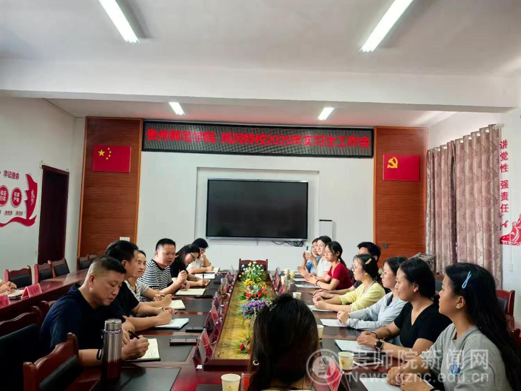12月29日,凤冈县特殊教育学校召开2025年实习工作总结会,对贵州师范学院、辽宁特殊教育师范高等专科学校实习生工作情况进行全面总结。会议回顾与总结了实习生为期4个月的教育实习工作,对优秀实习学生进行了表扬。贵州师范学院特殊教育系安文军博士,凤冈县特殊教育学校党支部书记、校长谢奎及学校行政人员、教导处人员、实习指导老师、实习生参加会议。