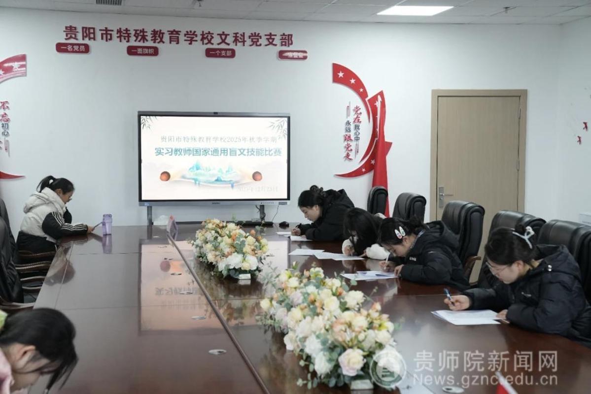 12月23日下午,贵州师范学院赴贵阳市特殊教育学校参加2025年秋季学期实习教师技能比赛暨访企拓岗活动。实习教师技能比赛活动现场秩序井然、氛围热烈。南京特殊教育师范学院、贵州师范学院、安顺学院、贵阳幼儿师范高等专科学校的实习教师参加了此次比赛。