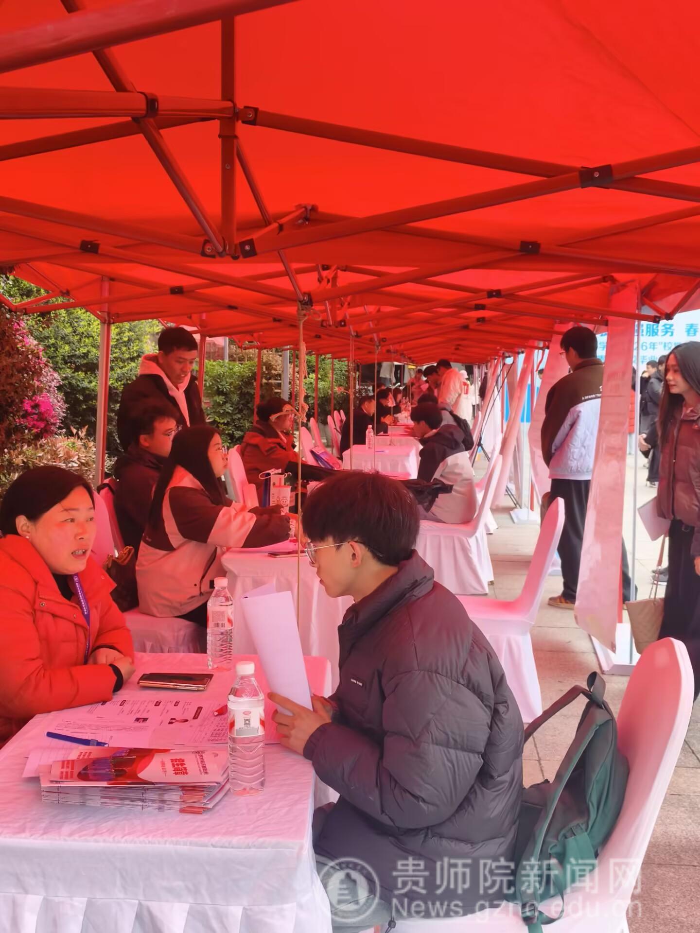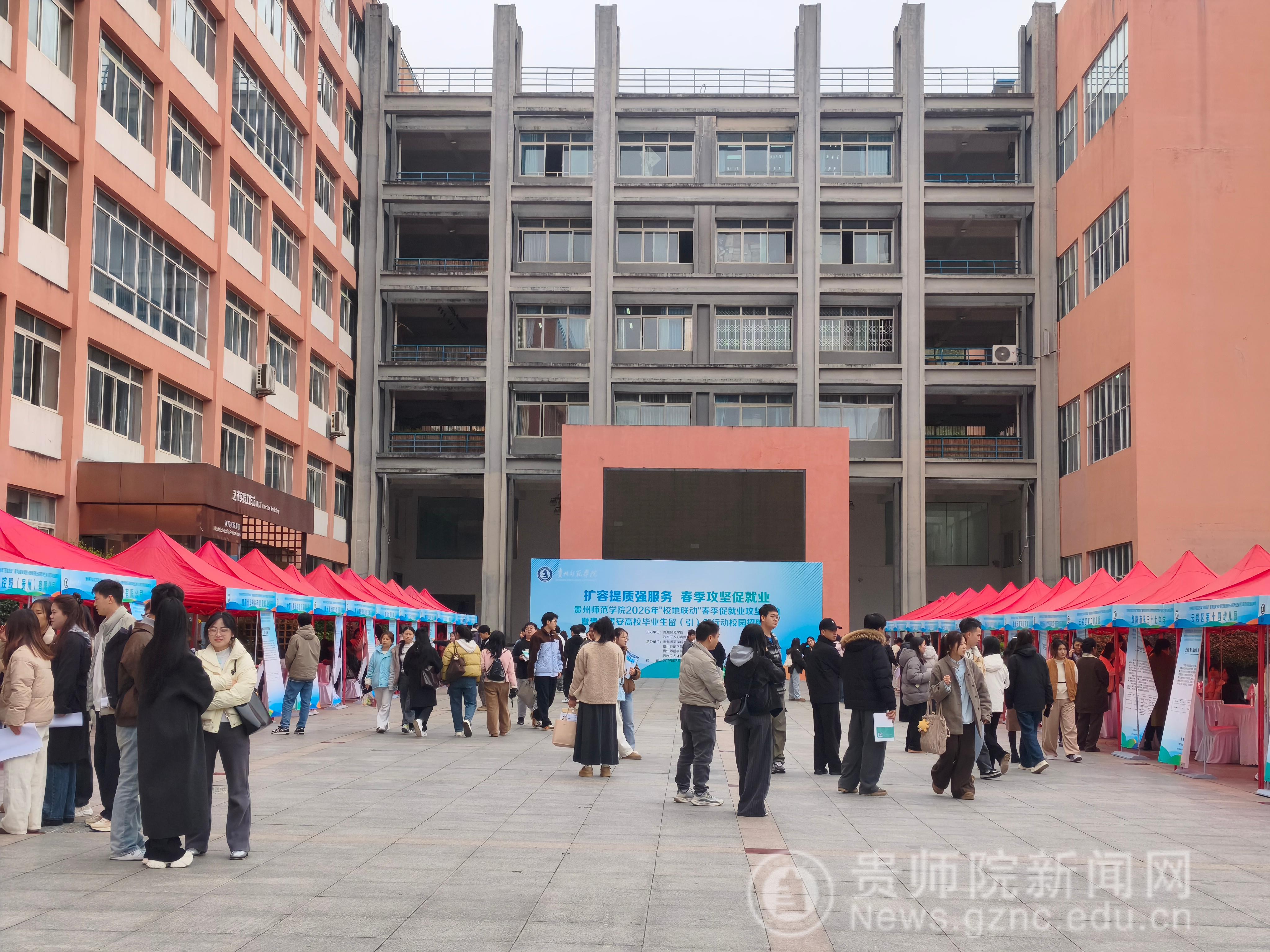 、生物科学学院、化学与材料学院及云岩区人才服务中心共同承办的2026年“校地联动”春季促就业攻坚行动暨贵阳贵安高校毕业生留(引)筑行动校园招聘会贵州师范学院专场,在学校逸夫楼凤凰广场成功举行。