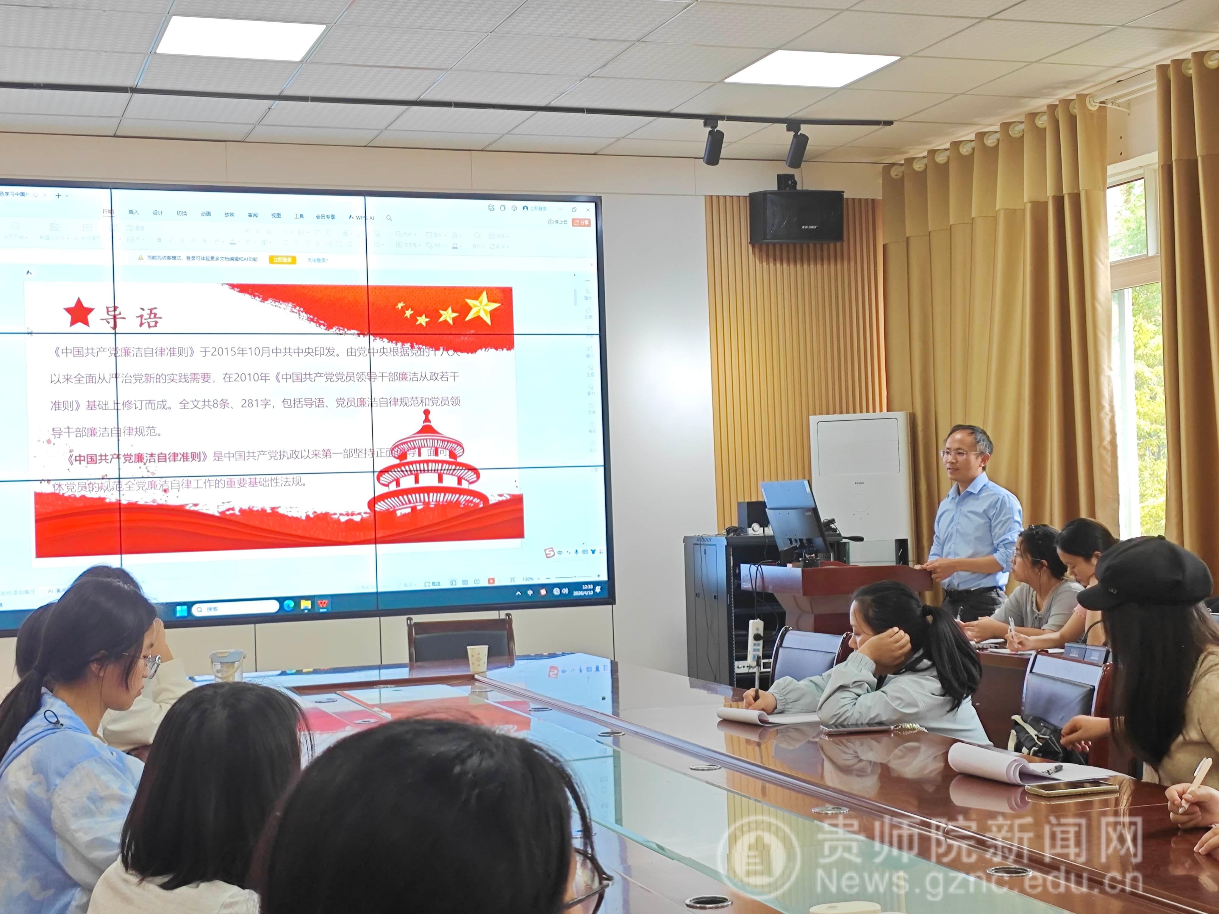课上,黎平辉围绕《中国共产党廉洁自律准则》展开全面解读,详细阐释准则的制定背景、核心要义和实践要求,重点讲解党员廉洁自律规范、党员领导干部廉洁自律规范等关键内容,引导学员深刻认识廉洁自律是共产党人的基本政治操守,是入党积极分子必须坚守的行为底线。他结合青年学子思想与学习生活实际,叮嘱学员自觉筑牢思想防线,严守纪律规矩,以清正廉洁的作风严格要求自身,在日常学习、生活与实践中践行廉洁自律精神。学员们专心听讲、认真做笔记,并结合自身实际深入思考,纷纷表示,将以此次学习为新起点,把《准则》要求转化为日常行为自觉,严守纪律底线、涵养优良作风,用实实在在的表现争取早日加入党组织。