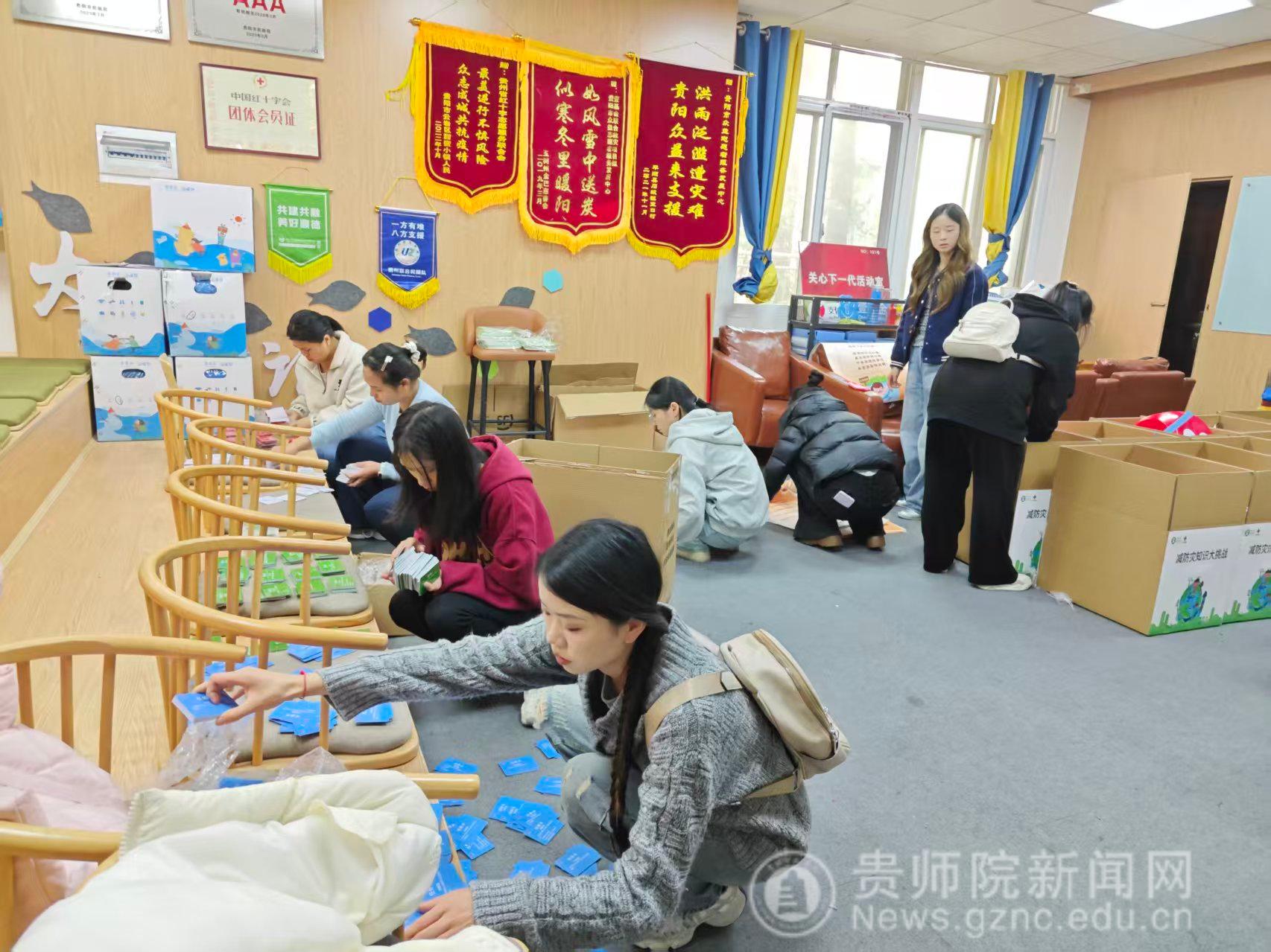 的志愿者们分工明确、协作高效,严格对照《游戏道具清单》逐一核对防减灾宣传手册、安全科普道具、爱心应急礼包等各类物料,将每份物资按标准分类整理、规范封装。大家以耐心细致的态度对待每一项工作,用严谨的作风确保物资分装的准确性与完整性,用实际行动诠释新时代青年的责任与担当。经过数小时的协作,所有防减灾活动物资均分装完毕,整齐码放待发。