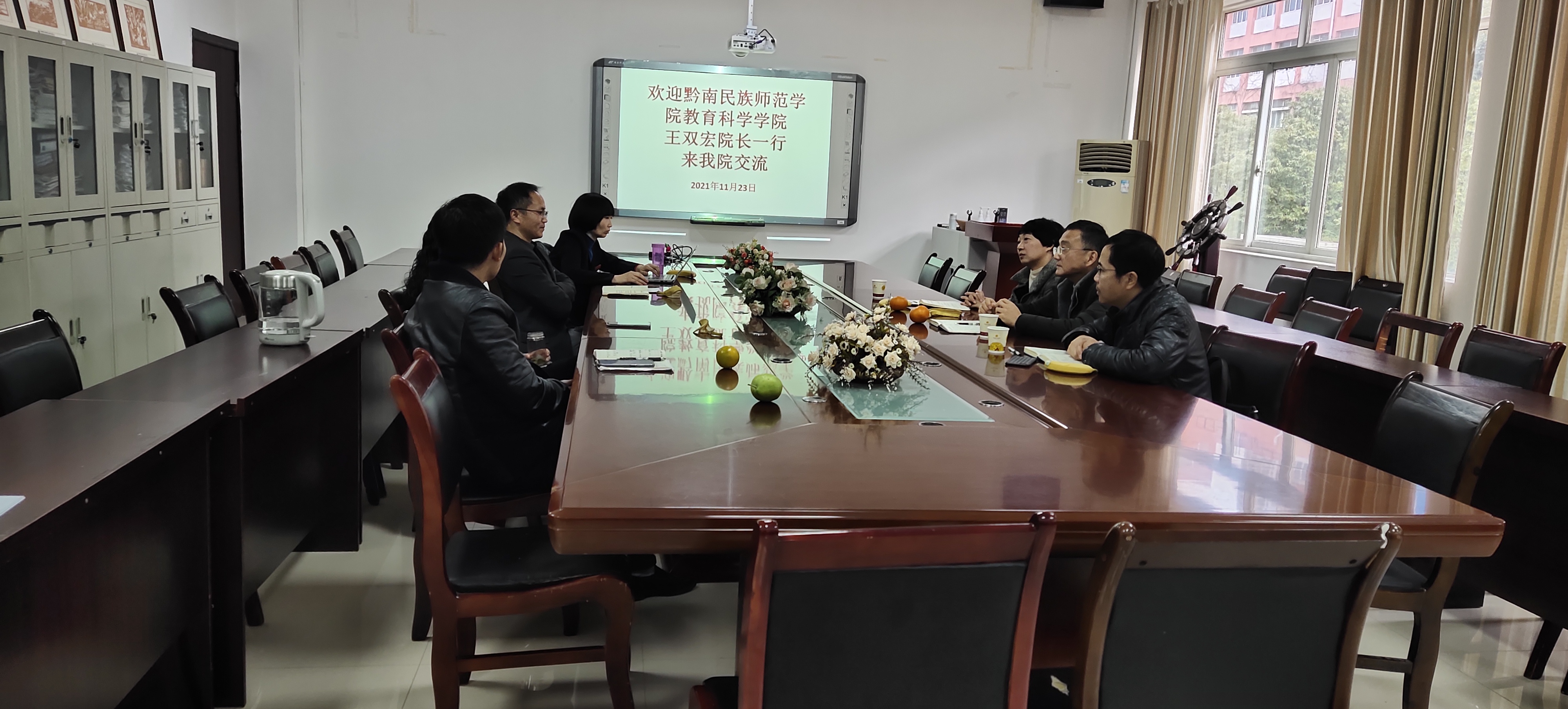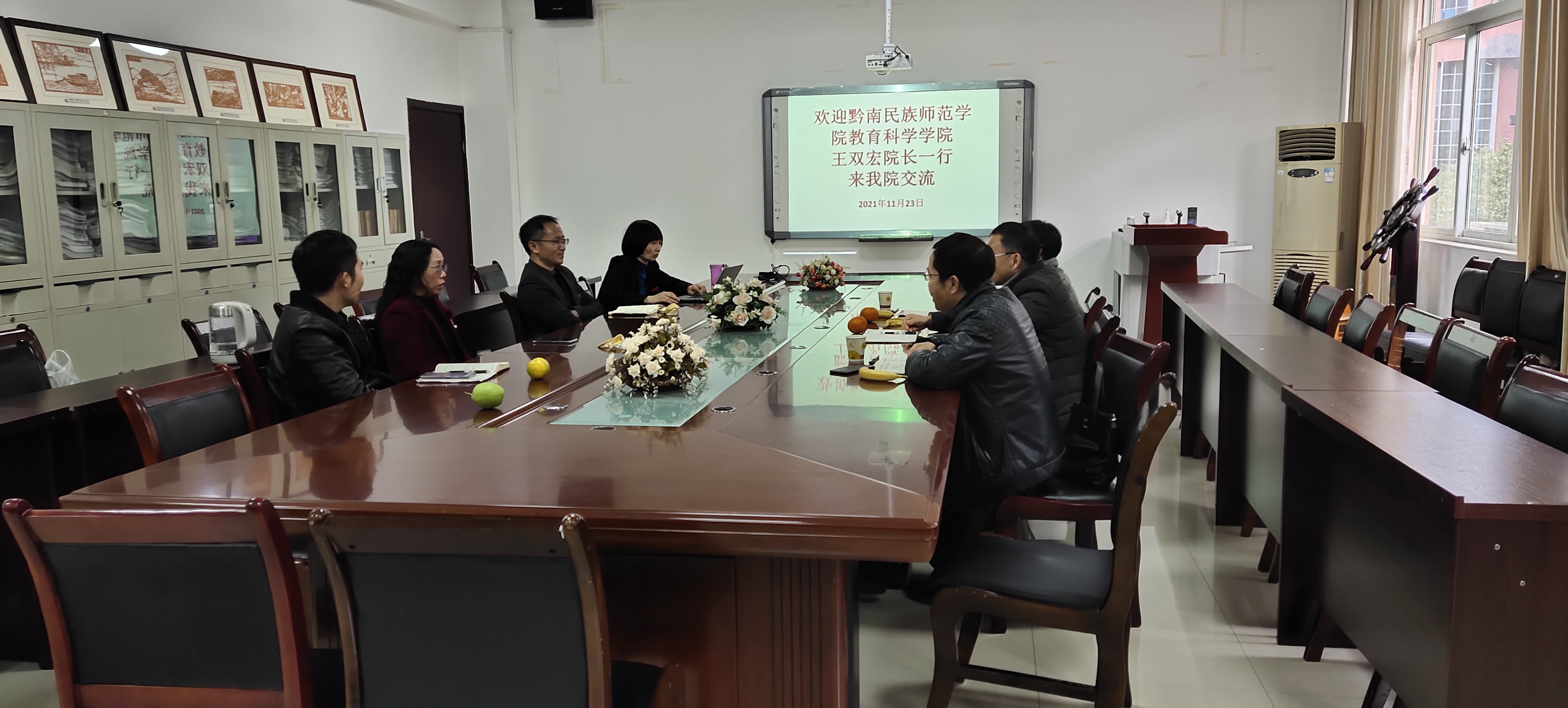首先,黎平辉副院长介绍参加此次交流会的领导及老师,随后,娄小韵老师介绍我院学前教育专业发展历程,学前教育专业教师的教学、科研情况以及学生来源和就业情况。听完娄老师的介绍后,王院长对我院学前教育专业的发展给予了充分的肯定。随后,王院长介绍了黔南民族师范学院学前教育专业各方面的发展情况。并咨询了我院关于师范专业认证的有益做法,以及课程大纲及人才培养方案的撰写等事宜。刘红院长和黎平辉副院长介绍了我院课程大纲和人才培养方案撰写等情况,以及我院关于师范专业认证做的相关事务。最后,在交流会圆满结束后,王双宏院长等人参观了我院学生的手工作品。