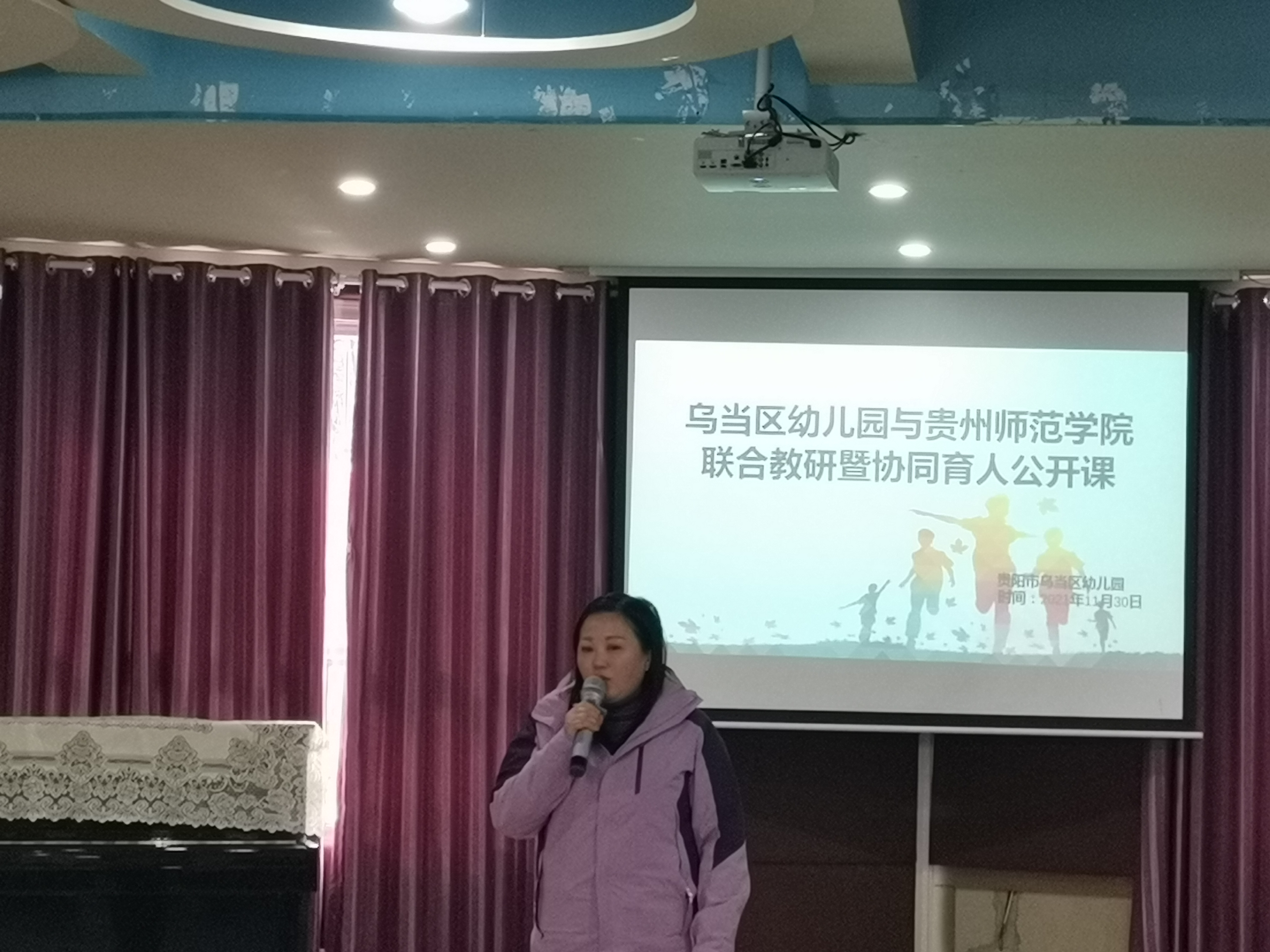 副院长黎平辉教授、贵州师范学院学前教育系系主任娄小韵教授、贵州师范学院学前教育系副教授刘英老师、贵州师范学院学前教育系冯静教师、乌当区幼儿园副园长陈凯遵、乌当区幼儿园副园长周琴、乌当区幼儿园副园长李雪梅、乌当区幼儿园保教主任付霞,贵州师范学院实习生、见习生代表,乌当区幼儿园、第一责任区部分教师代表约50人。