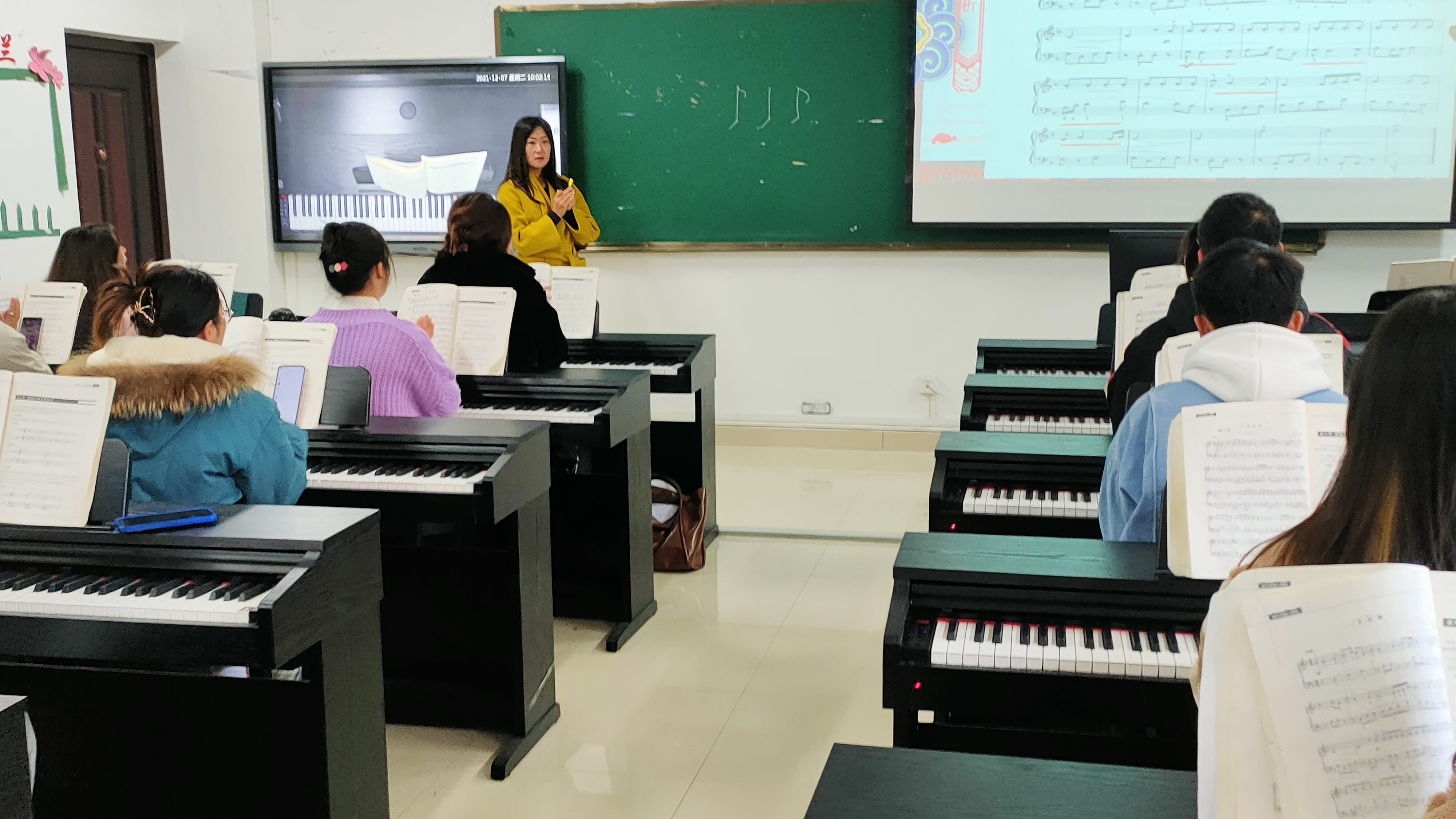 马慧慧老师在逸夫楼416教室进行了校级创新公开示范课,课程内容为钢琴3课程的复调弹奏及练习:《采花调》,学院领导和部分教师观摩了此次教学。