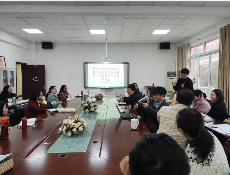 举行了2021年教学改革总结会议暨第二届教学节示范课研讨会。研讨会由黎平辉副院长主持,学院全体教师参与了本次研讨活动。