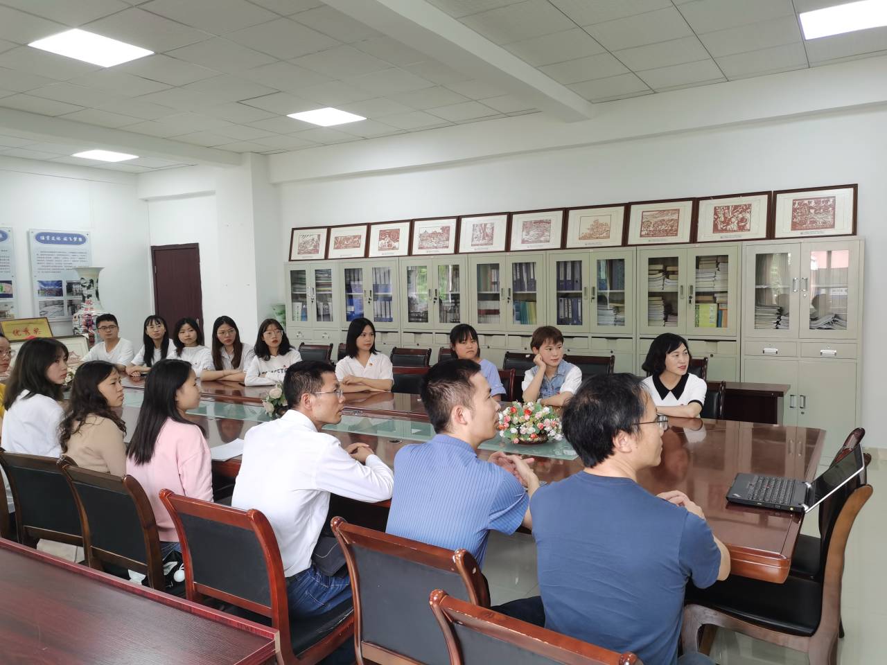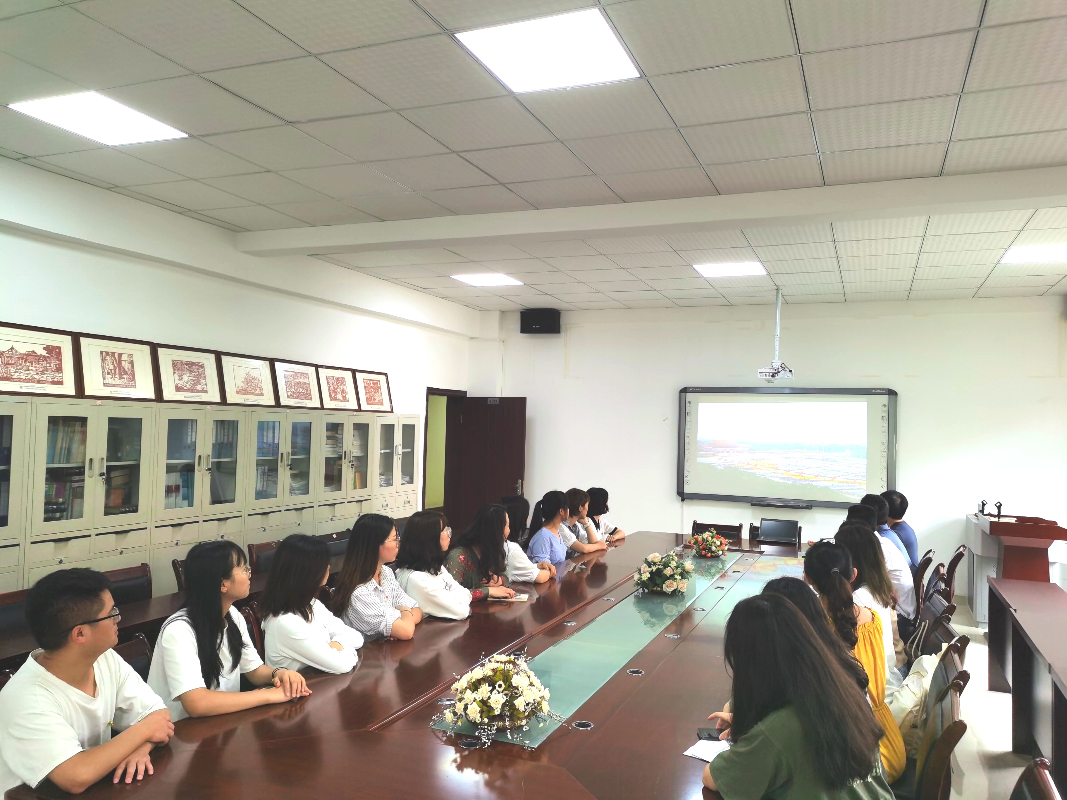 教师党支部组织教师党员在逸夫楼三楼会议室集中收看庆祝中国共产党成立100周年大会直播。会议室里座无虚席,党员同志们怀着激动的心情,期待着光荣时刻的到来!