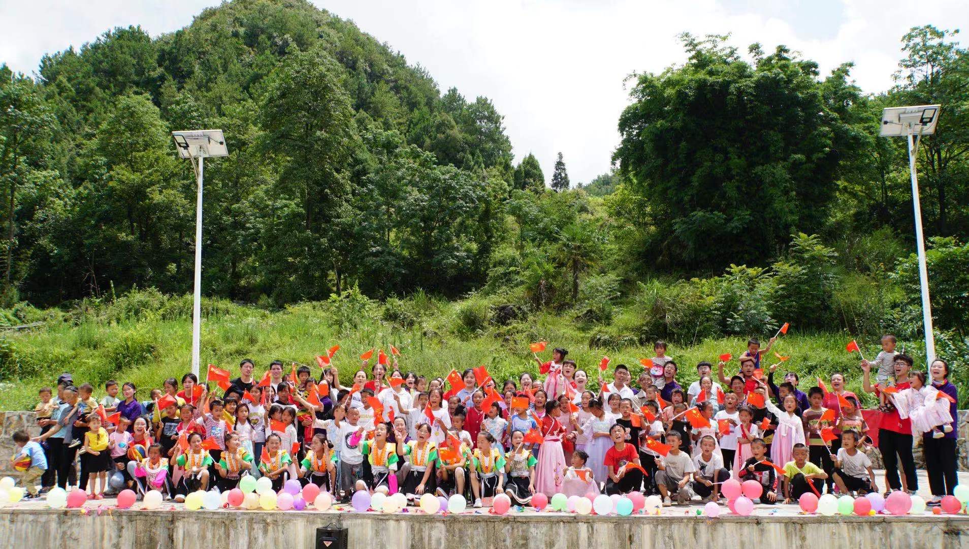 志愿团队开展了丰富多彩的文艺活动,其中包括应用心理学专业学生组织的团辅活动和曼陀罗绘画以及基本礼仪教学、学前教育专业学生组织丰富多样的课程(音乐课、舞蹈课、篮球课、花样跳绳课)以及带领小朋友们表演红色经典儿童剧、特殊教育专业学生组织的手语课和普通话课、艺术教育专业学生组织的党史拼图绘画。同时,志愿团队在走访村民过程中宣讲党史故事、普及普通话、为村民打扫卫生、做农活、拍全家福,还为该村绘制富有民族特色的墙绘、打造舞蹈教室。此外,当地村民为志愿团队表演芦笙伴奏舞蹈,小朋友们教志愿者们说苗语、跳苗舞、吹芦笙以及体验田间生活。最后,志愿团队基于整体的教学活动举办了一场隆重的文艺汇演,以全体大合唱《没有共产党就没有新中国》为“三下乡”暑期社会实践活动画上圆满的句号。
