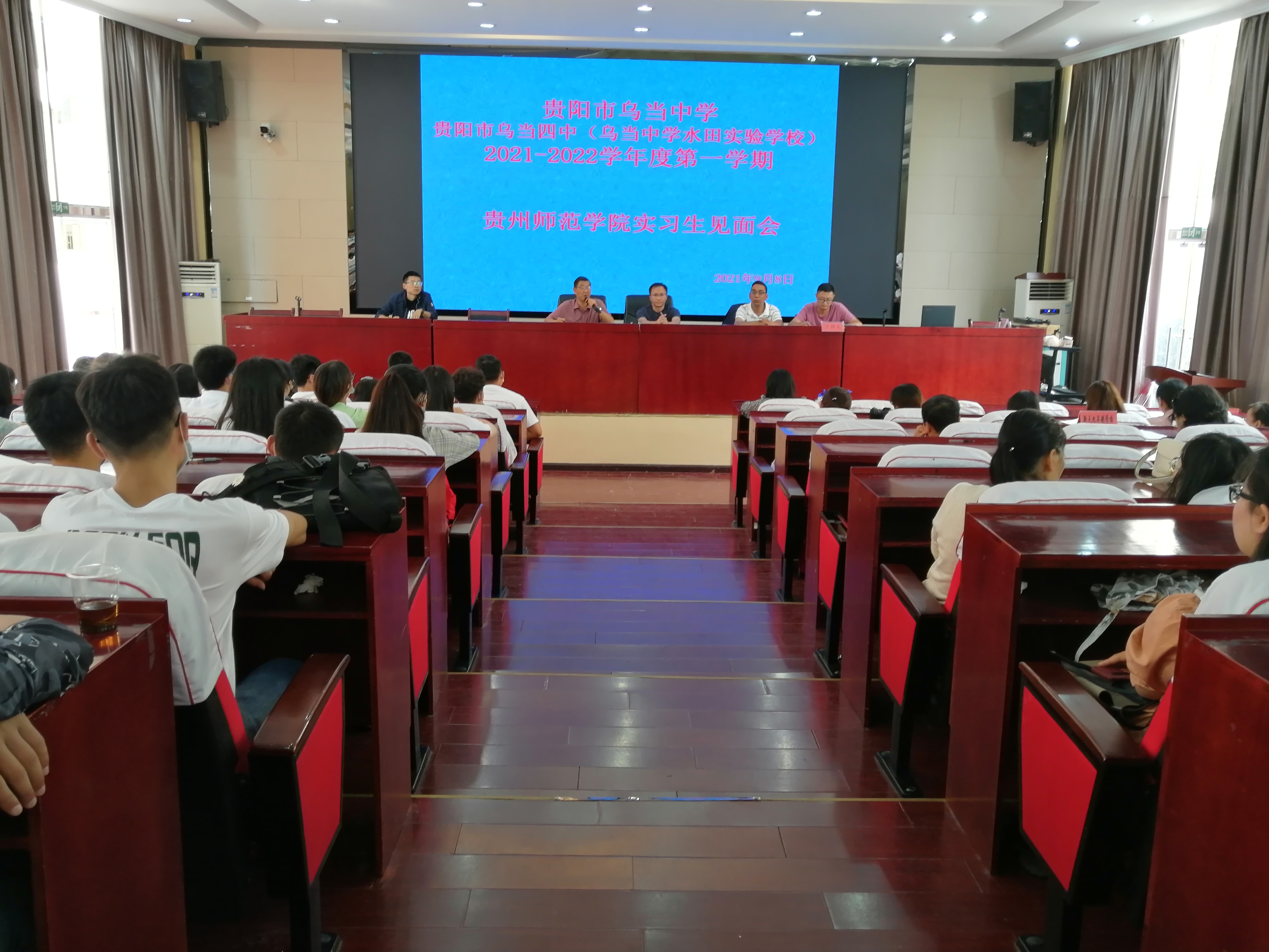 副院长黎平辉、科研助理陈悦送实习生到贵阳市乌当区乌当中学报到,并出席了贵阳市乌当区乌当中学的实习生见面会,对乌当中学实习指导教师现场进行了培训。