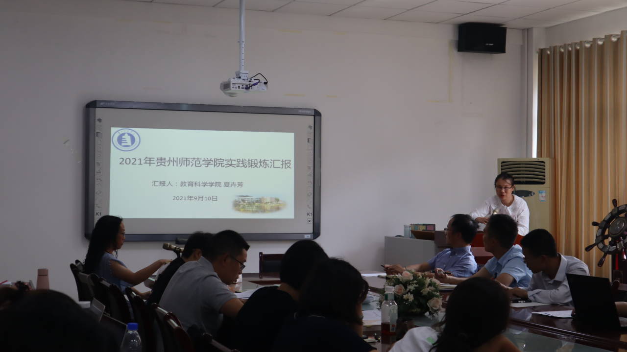 组织跟岗实践教师在学院会议室开展跟岗实践学习汇报交流会,夏卉芳老师做了在贵阳市乌当中学心理中心与贵阳市云岩区惠智学校跟岗实践情况分享与交流,王雯颖老师也汇报和分享了在贵阳市六一幼儿园名师工作室跟岗实践的情况,教科院全体教师参与了此次汇报交流会。