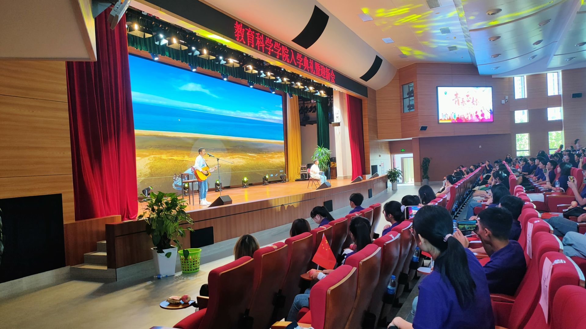 迎新会在学院团委学生会全体同学热情洋溢的开场舞中正式拉开序幕,在四位主持人声情并茂的主持下,歌舞、歌唱、乐器等精彩的节目为新生呈现了丰富的视听盛宴。本次迎新会共有10个节目,最后以全场合唱《我和我的祖国》结束本次汇演。