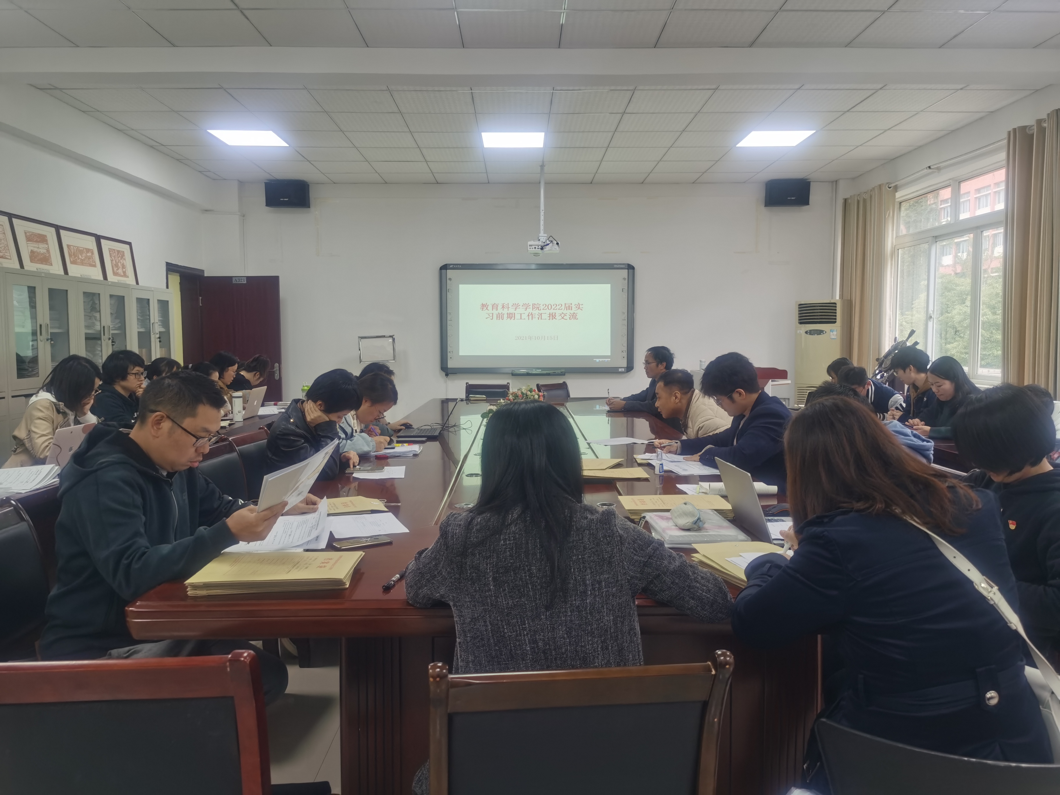 在会议室召开了2022届学生实习前期工作汇报交流会。副院长黎平辉以及全体2022届实习指导教师参加了此次会议。