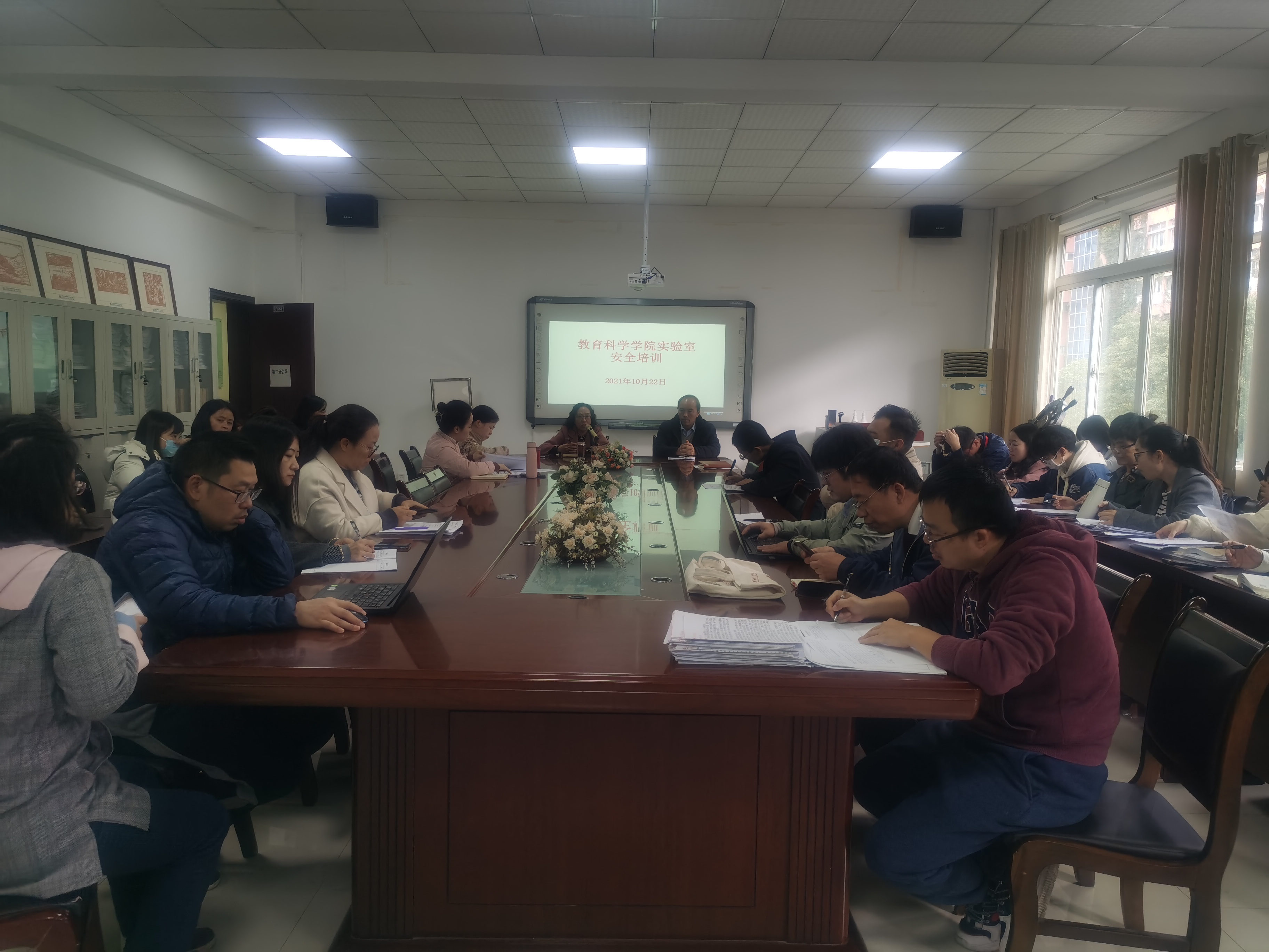 2021年10月22日下午,成人色情 在逸夫楼会议室举办实验室安全培训。本次培训由成人色情 院长刘红主讲,全院教职工聆听了本次培训。