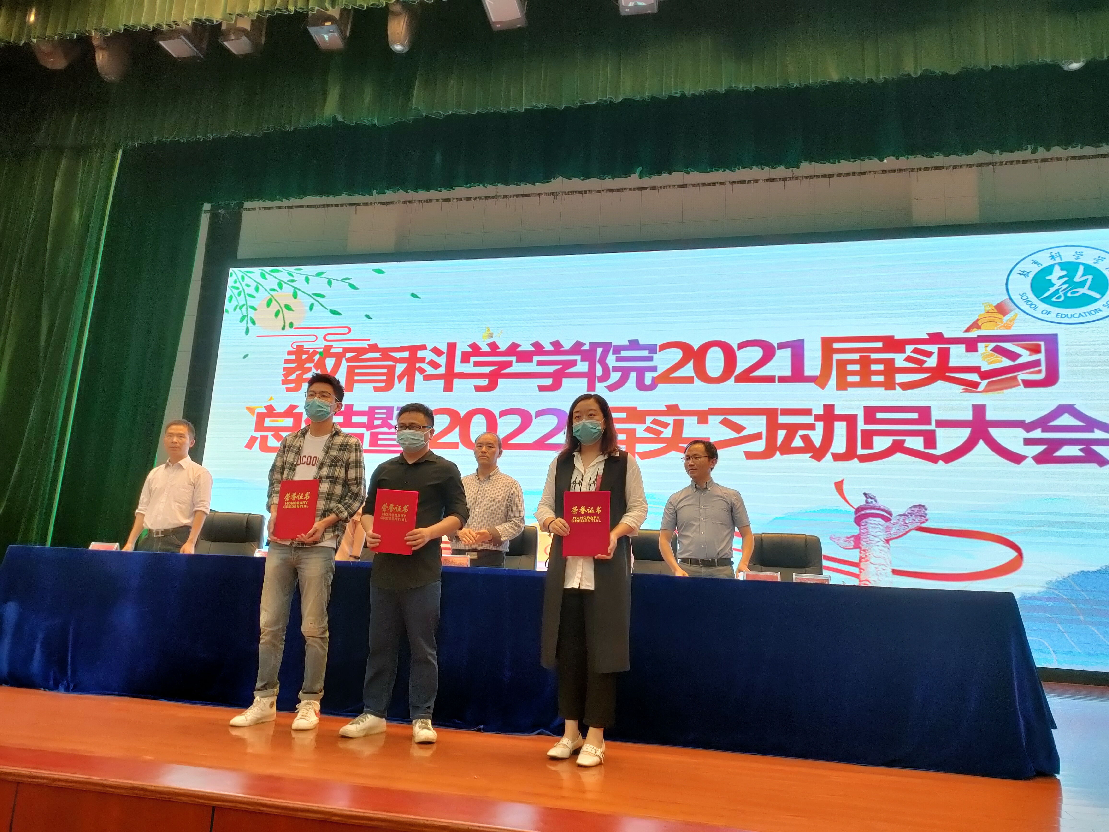 会议开始,副院长黎平辉对2021届实习进行总结并宣布了校级优秀实习指导教师、校级优秀实习生和院级优秀实习生获奖名单,学院领导为他们颁发荣誉证书以表彰他们的突出表现。然后,副院长黎平辉布置了2022届实习任务,让学生全面了解了实习,并进一步明确学生实习前要做的准备工作。副书记傅小芳给学生们强调了实习生安全注意事项,希望同学们遵守纪律,注意安全;副院长袁川分别对实习指导教师和即将走向实习岗位的每一位同学提出了严格的师德要求。党委书记彭祥友对2022届实习生进行了思想动员。在2018级4位实习生代表所有实习生做了实习表态后,院长刘红对本次会议做了总结发言,强调2022届实习生要珍惜实习机会,严格要求自己,磨砺自身,积极圆满完成实习任务。