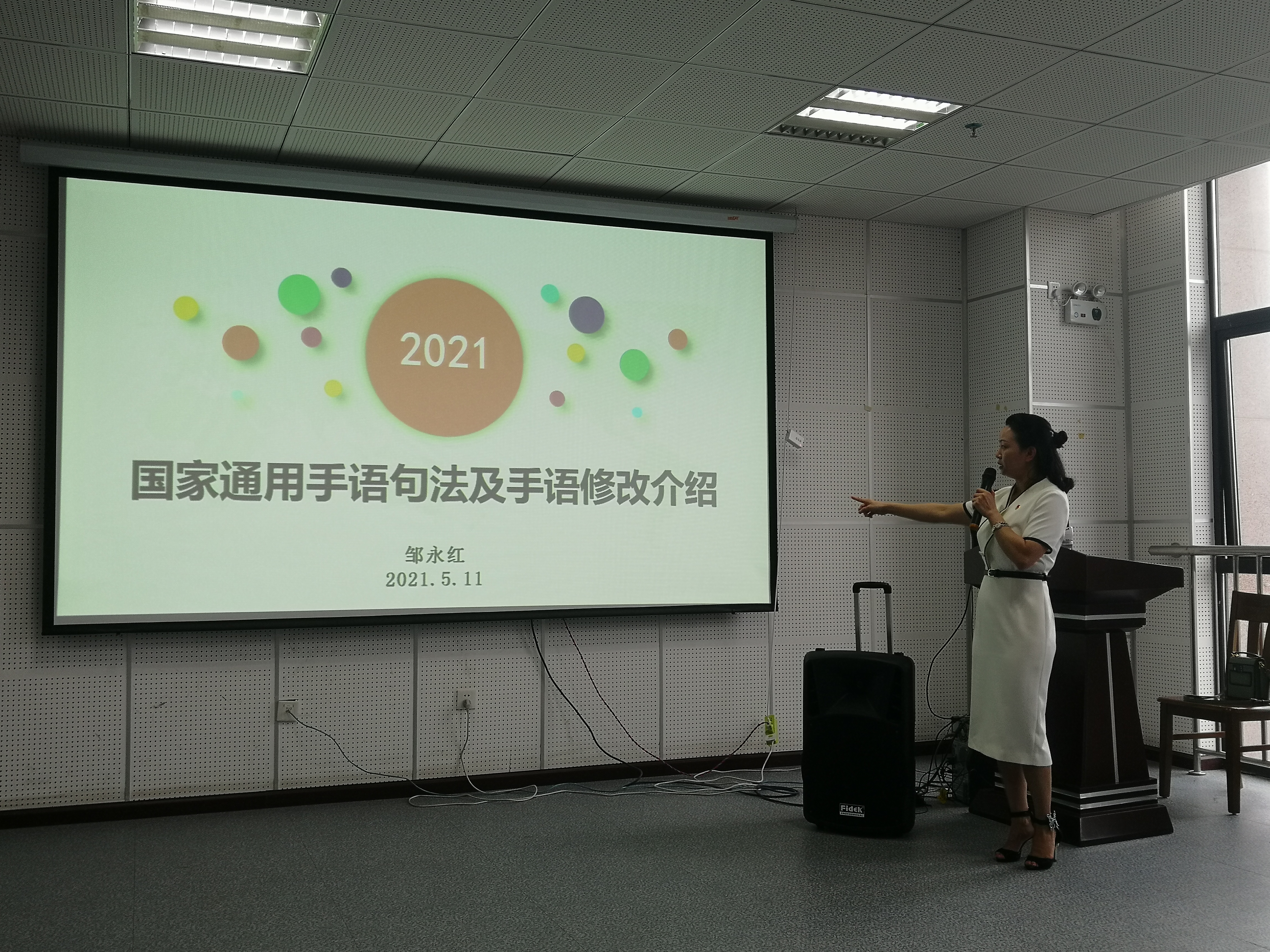 5月11日上午9点,我院特殊教育系邀请到贵阳市盲聋哑学校教务主任邹永红,为学生开展关于“国家通用手语句法及手语修改介绍”的讲座,参与此次讲座的有特殊教育系全体教师与2018、2019级特殊教育专业学生。