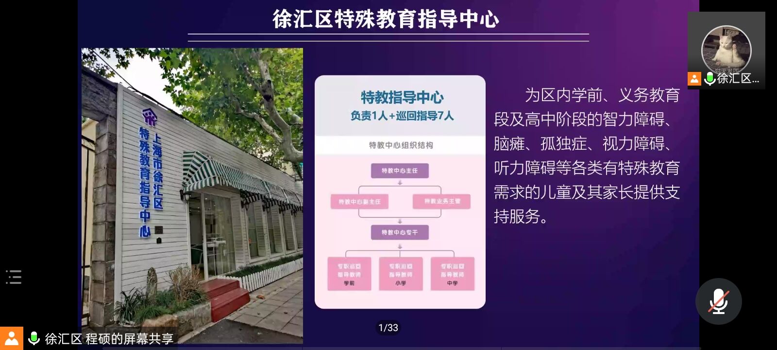 特殊教育系举办了关于“区校联动下的随班就读学生教育教学实践”的线上主题讲座。本次讲座邀请到上海市徐汇区特教指导中心的程硕老师为主讲人,特殊教育系安文军老师担任此次讲座主持。参与此次讲座的有特殊教育系全体教师与2018级、2019级特殊教育专业学生。