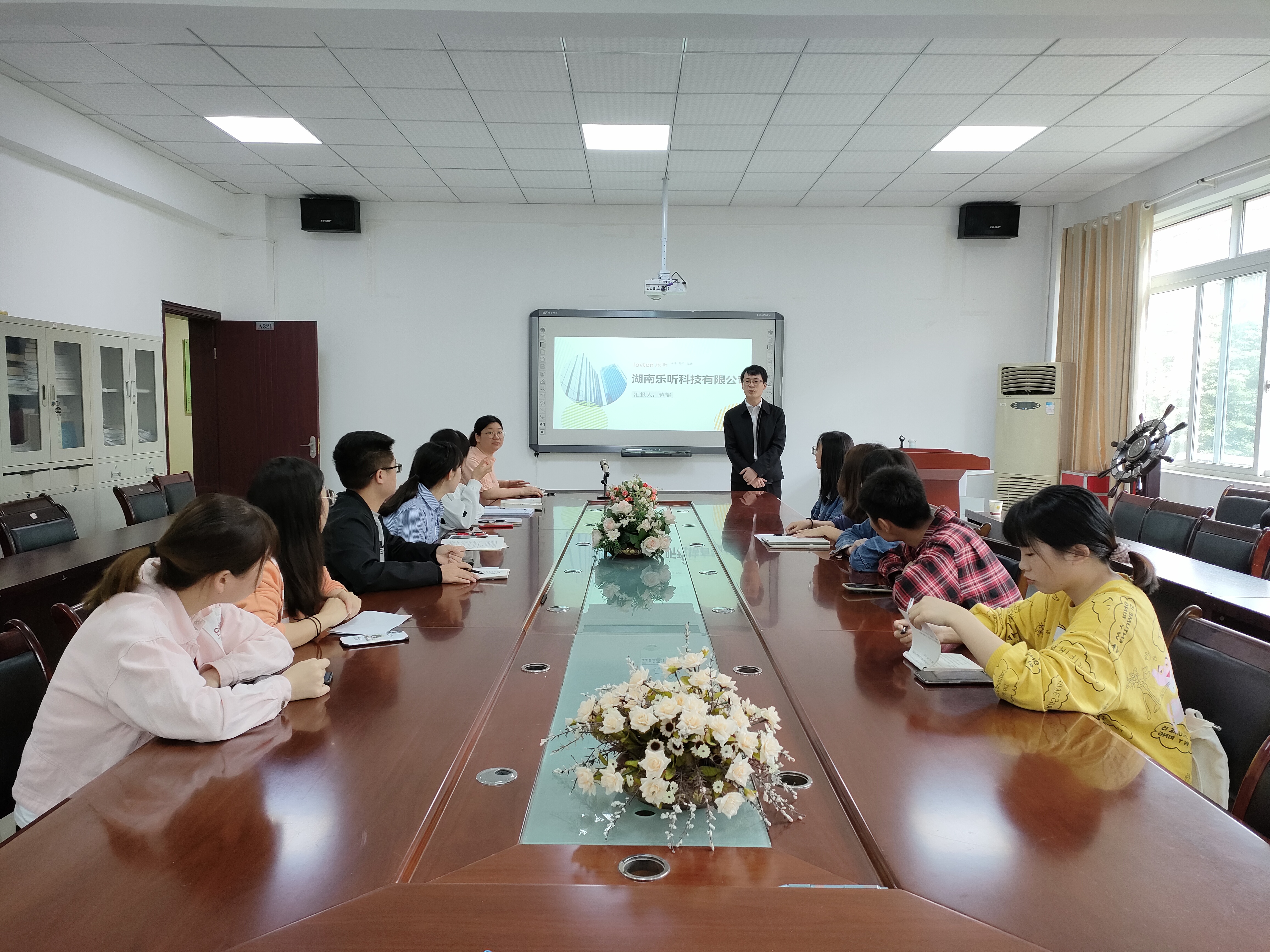 在逸夫楼321学院会议室举行2021级毕业生第八场招聘会,此次招聘单位为湖南乐听科技有限公司。招聘会由学院党委副书记傅小芳主持,2017级学前教育、特殊教育和应用心理学专业的感兴趣的学生参加了此次招聘会。