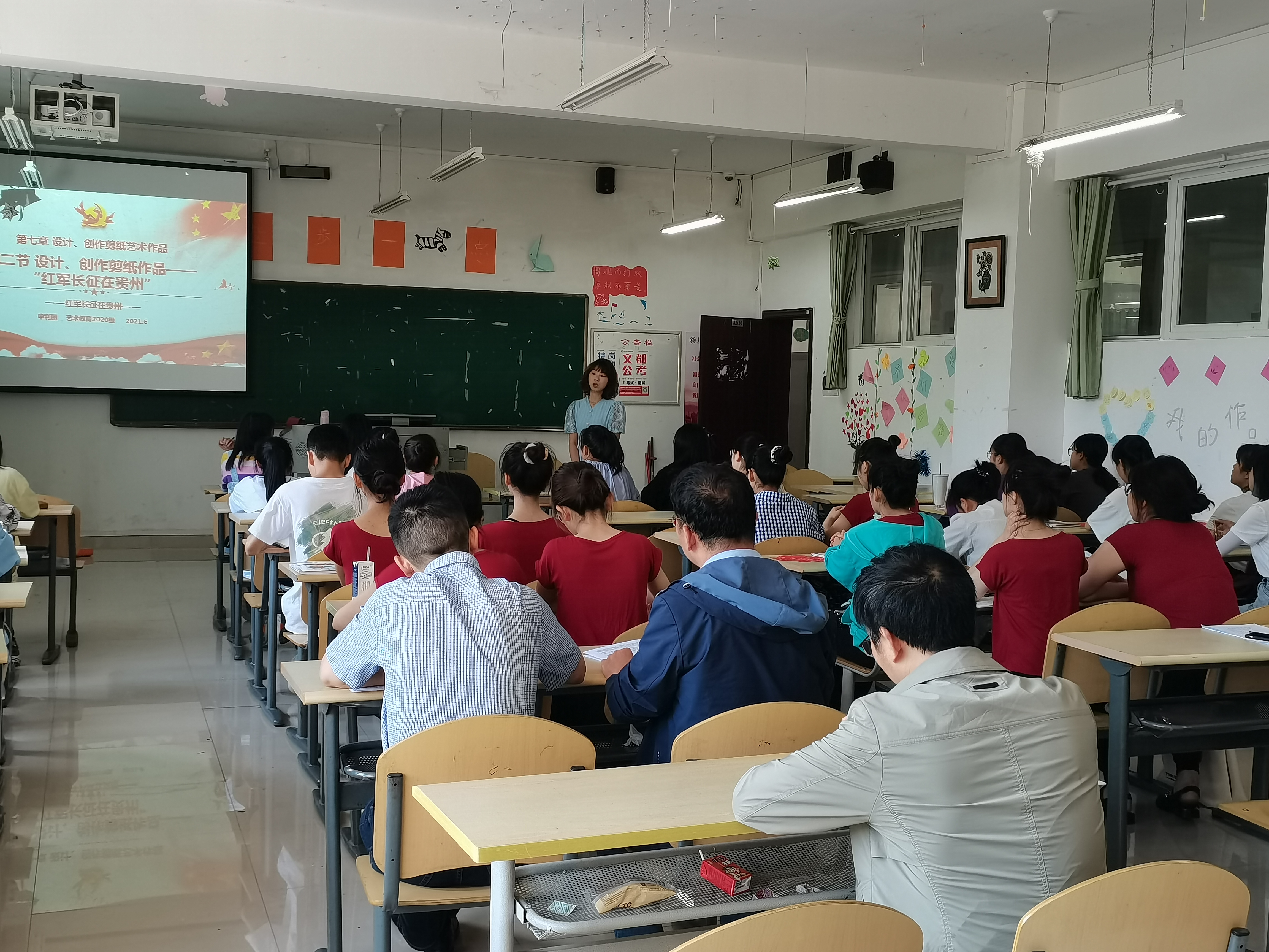 申利丽老师在艺术教育专业课程《剪纸艺术》中,将“党史”教育贯穿于整个教学过程,在逸夫楼516教室上了一堂别开生面的“设计、创作剪纸作品——红军长征在贵州”公开课。成人色情