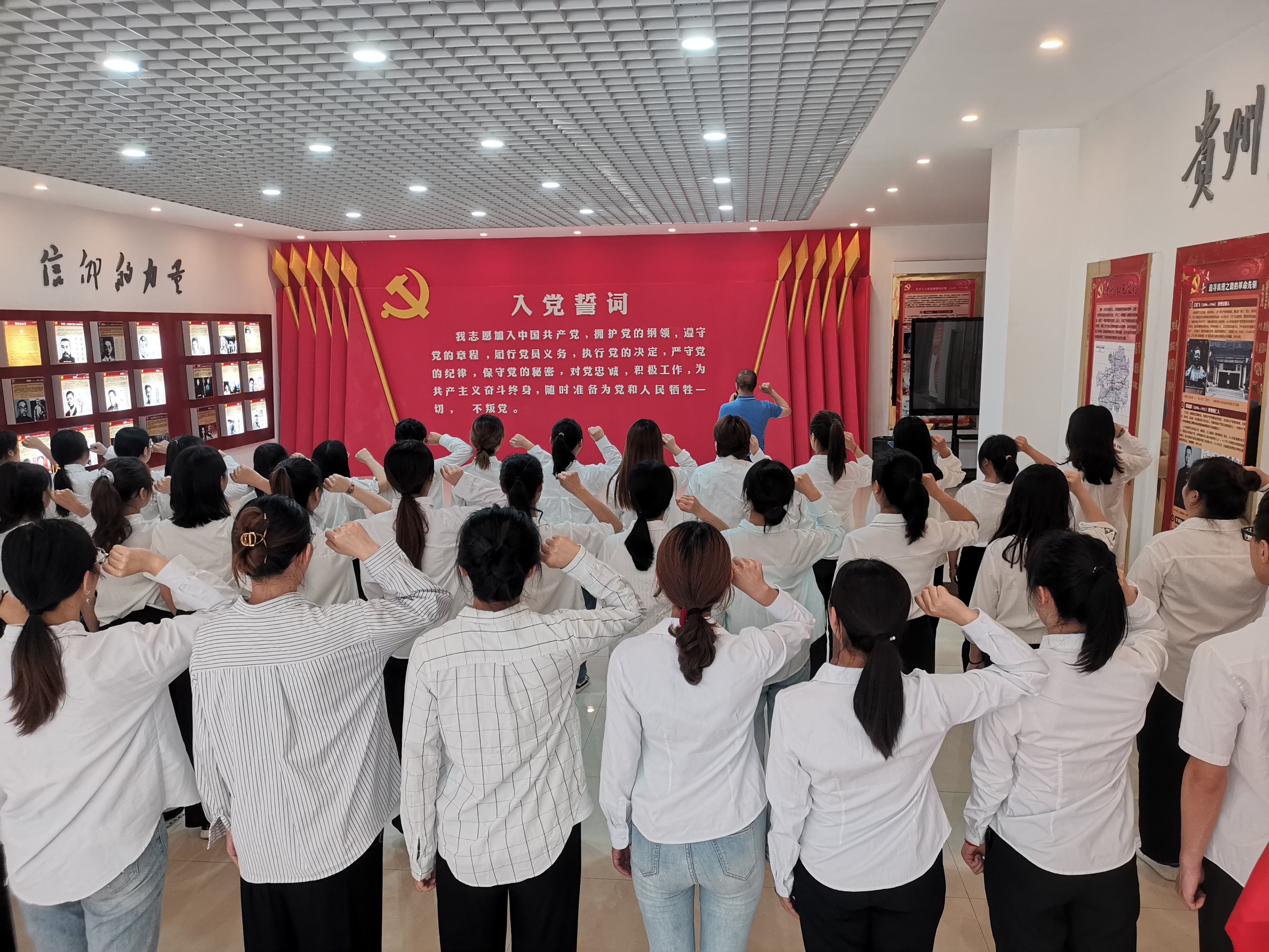 35名预备党员参加入党宣誓,其他党员重温入党誓词。