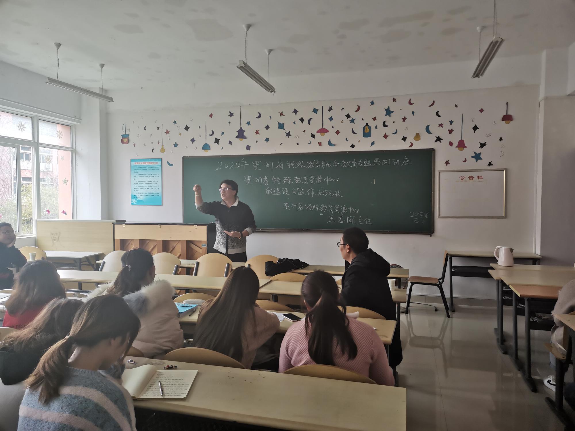 为了加强特殊教育专业学生关于融合教育与康复教育的理论学习与实践技能的提升,提高应用型人才的培养质量,特殊教育系组织了2020年贵州省特殊教育省级专项融合教育专题系列讲座,邀请到了贵州省特殊教育资源中心王志刚主任和习水县特殊教育学校刘刚先副校长,为特教系学生做了《贵州省特殊教育资源中心的建设与运作的现状》、《融合教育工作者应有的认知--动作康复教育评估的基础知识与实践技能》、《动作康复教育个案的评估与训练方案设计》的讲座。讲座于2020年11月7日分别在逸夫楼625教室、逸夫楼627知动康复训练室举行,由特殊教育系副教授雷经国主持,特教系的教师和学生积极参与了本次讲座与主题交流活动。