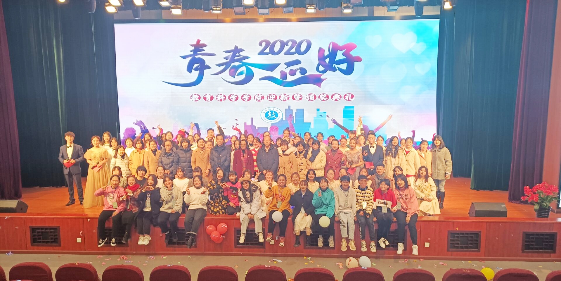 在逸夫楼演播厅举办了2020年“青春正好”迎新暨颁奖典礼。学院领导、老师、辅导员及各学院主席团和各班代表都出席了此次典礼。