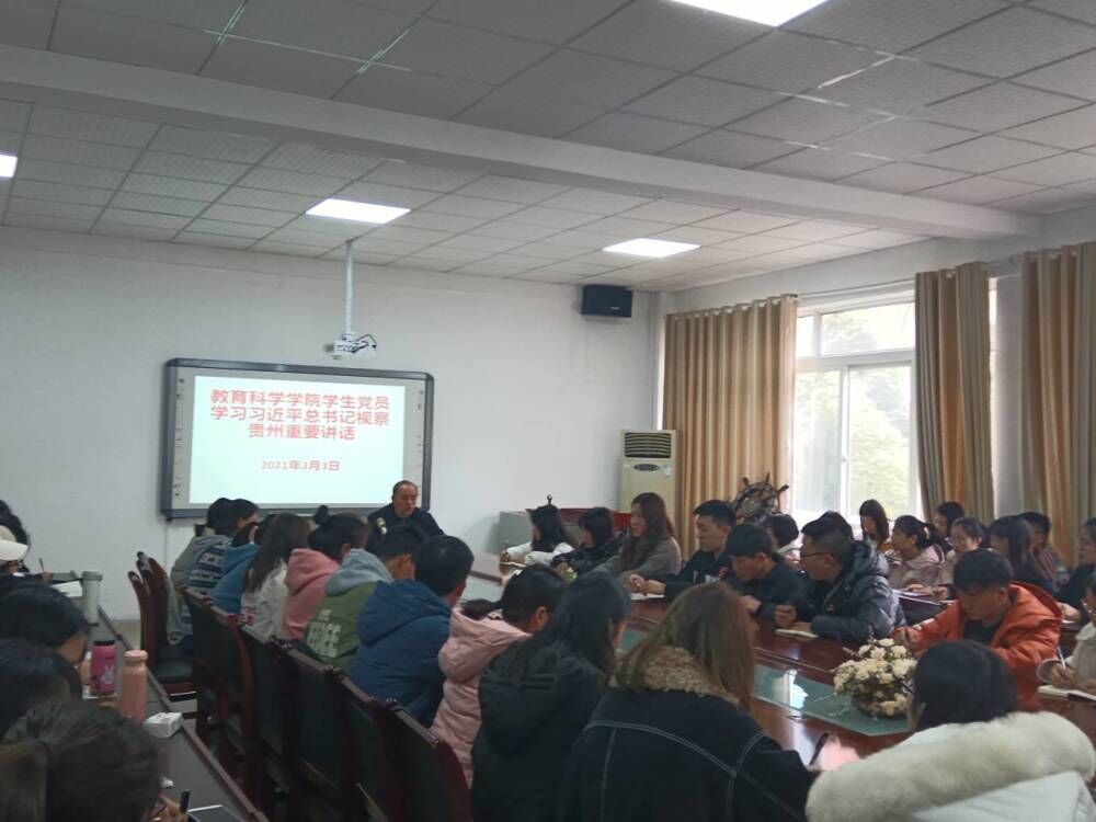 党委书记彭祥友给全院学生党员宣讲学习习近平总书记视察贵州重要讲话精神,学生党支部副书记张玮岳主持学习会。