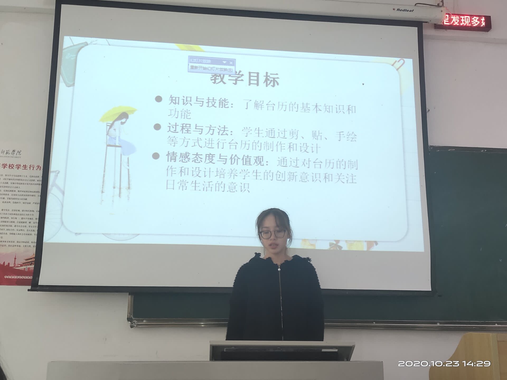 此次比赛中,同学们的课程来源均选自于小学美术常用的四个出版社出版的小学美术教材,严格按照《义务教育美术课程标准》进行教案撰写。比赛伊始,选手依次自信满满的走上讲台,在一张张设计精美的幻灯片中,同学们分别从学情分析、教学目标、教学准备、教学过程、教学反思、教学板书等内容进行说课,逐一展示了自己的教案设计,无论是内容还是设计,都丰富新颖,形式多样,环节紧扣。比赛过程中,掌声与喝彩声经久不绝,将比赛推向一场又一场高潮。两位评委老师也分别从选手课程的普通话、体态礼仪等细节进行了客观点评,对课程导入、教授新课过程、板书、幻灯片设计也进行了悉心指导,让参赛的同学有了自我提升的机会,也让观赛的同学掌握更多说课技能!