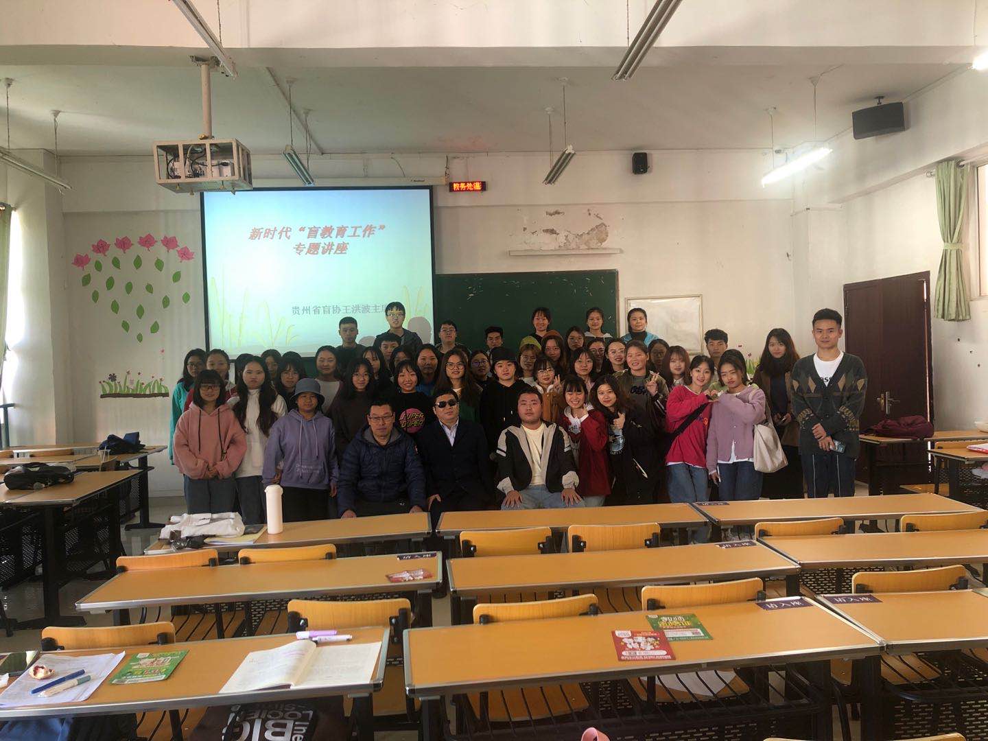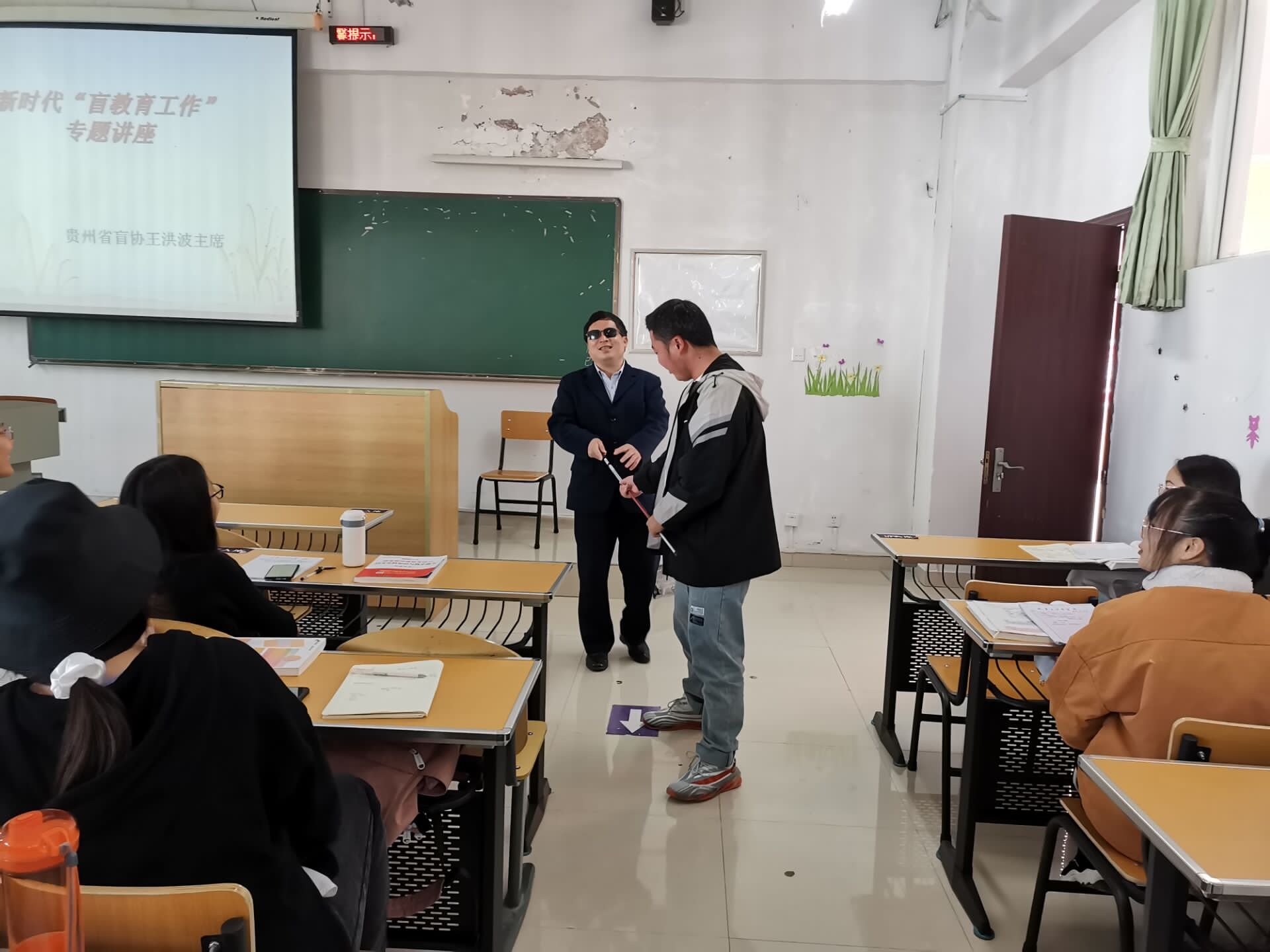 特邀请贵州省盲协主席王洪波为特殊教育系学生开设“新时代盲教育工作的实践工作”专题讲座。讲座由特殊教育系副教授雷经国主持,特殊教育系学生参加了讲座。