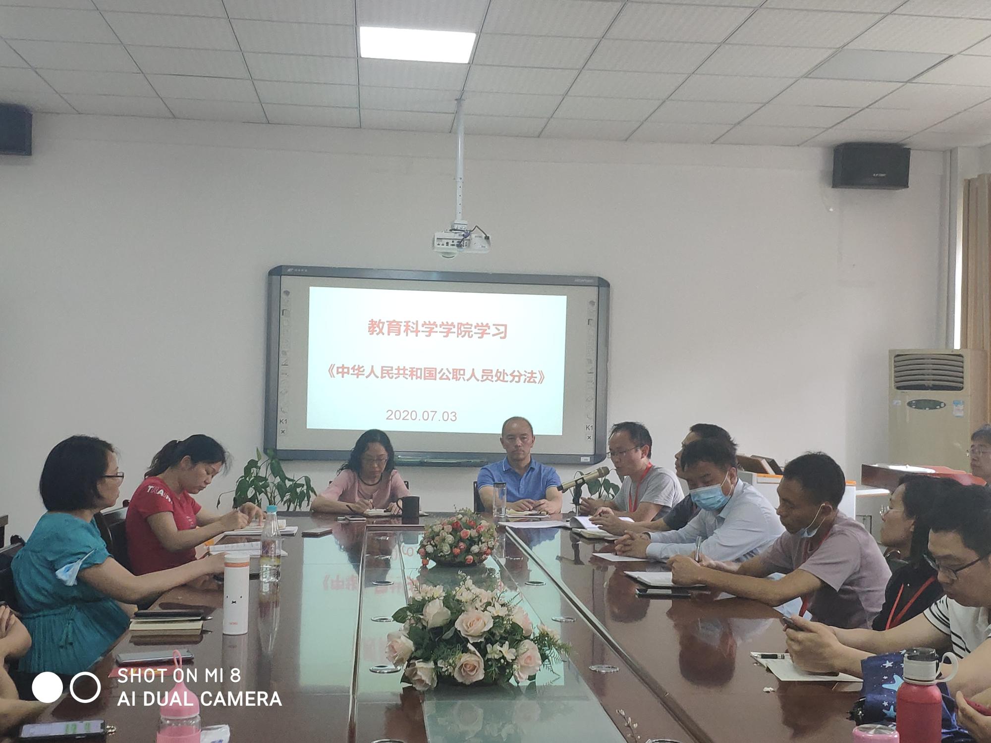 会议室,院党委书记彭祥友带领全院教职工集中学习了《中华人民共和国公职人员政务处分法》。