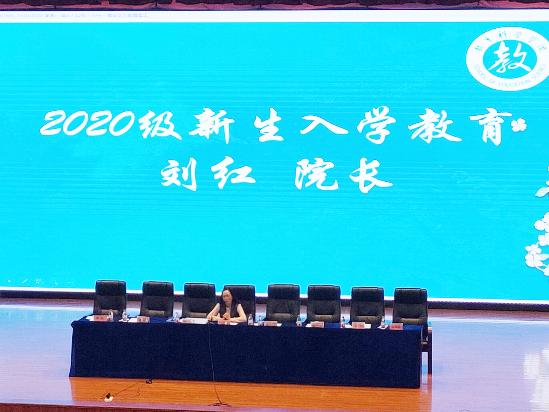 在逸夫楼演播厅举行了2020级新生入学教育。学院党委书记彭祥友、院长刘红、副书记傅小芳、副院长黎平辉、副院长袁川及团委负责人张源作为主讲人为2020级新生开展了入学教育专题活动。入学教育活动由张源主持。