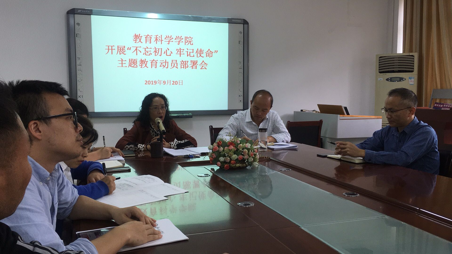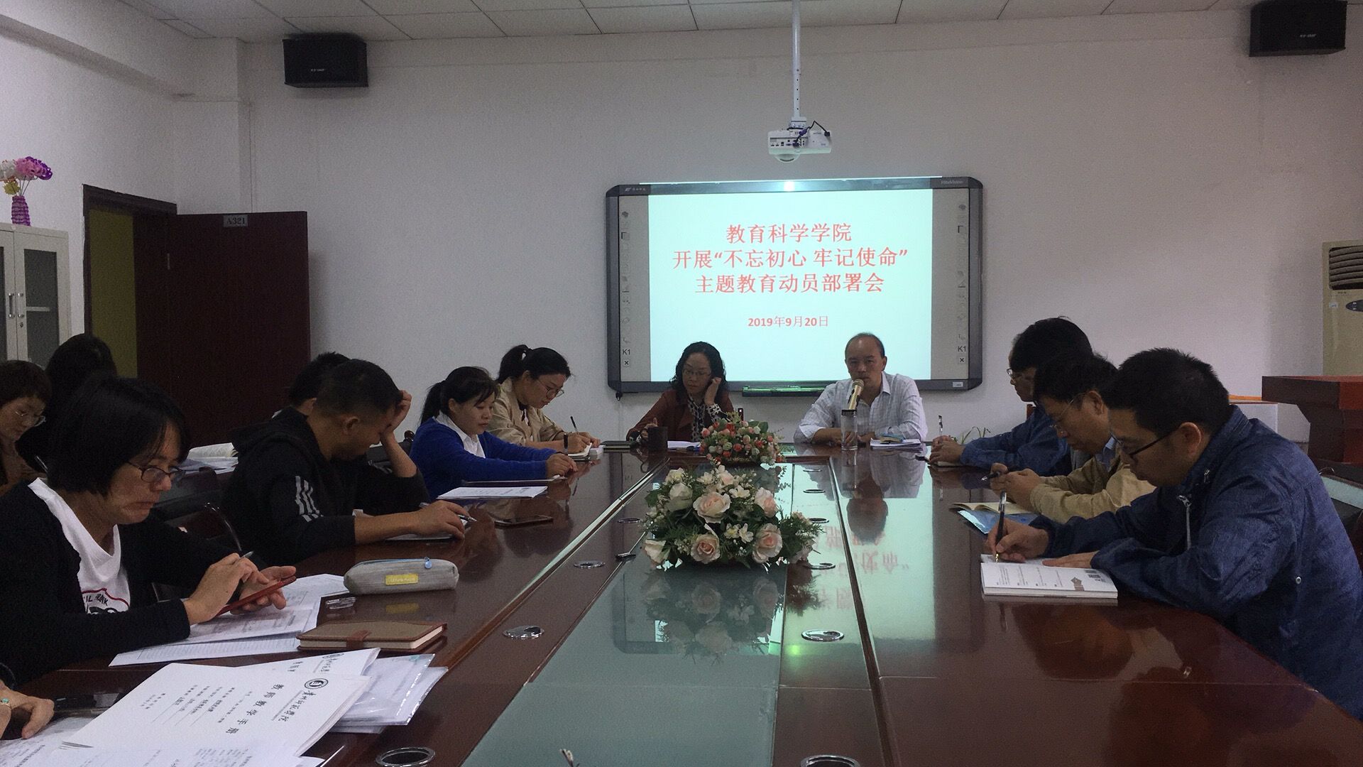 在逸夫楼三楼会议室开展““不忘初心、牢记使命”主题教育“不忘初心、牢记使命”主题教育题教育动员部署会。全院师生党员参加,会议由学院党委书记彭祥友主持。