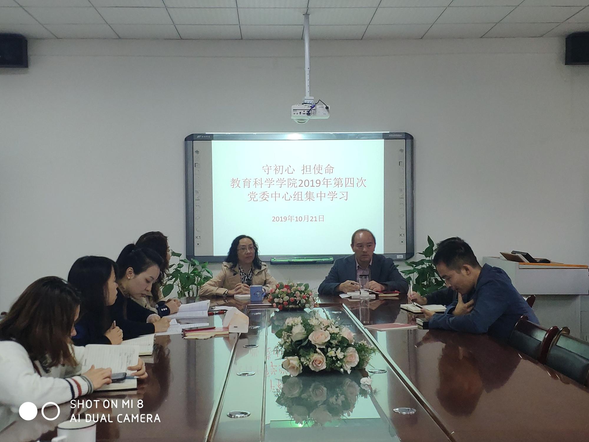 2019年党委中心组第四次集中学习在逸夫楼321会议室进行。院党委书记彭祥友、院长刘红、副书记傅小芳、副院长黎平辉和袁川,以及团委、办公室、各党支部负责人到场参加。学习活动由彭祥友主持。