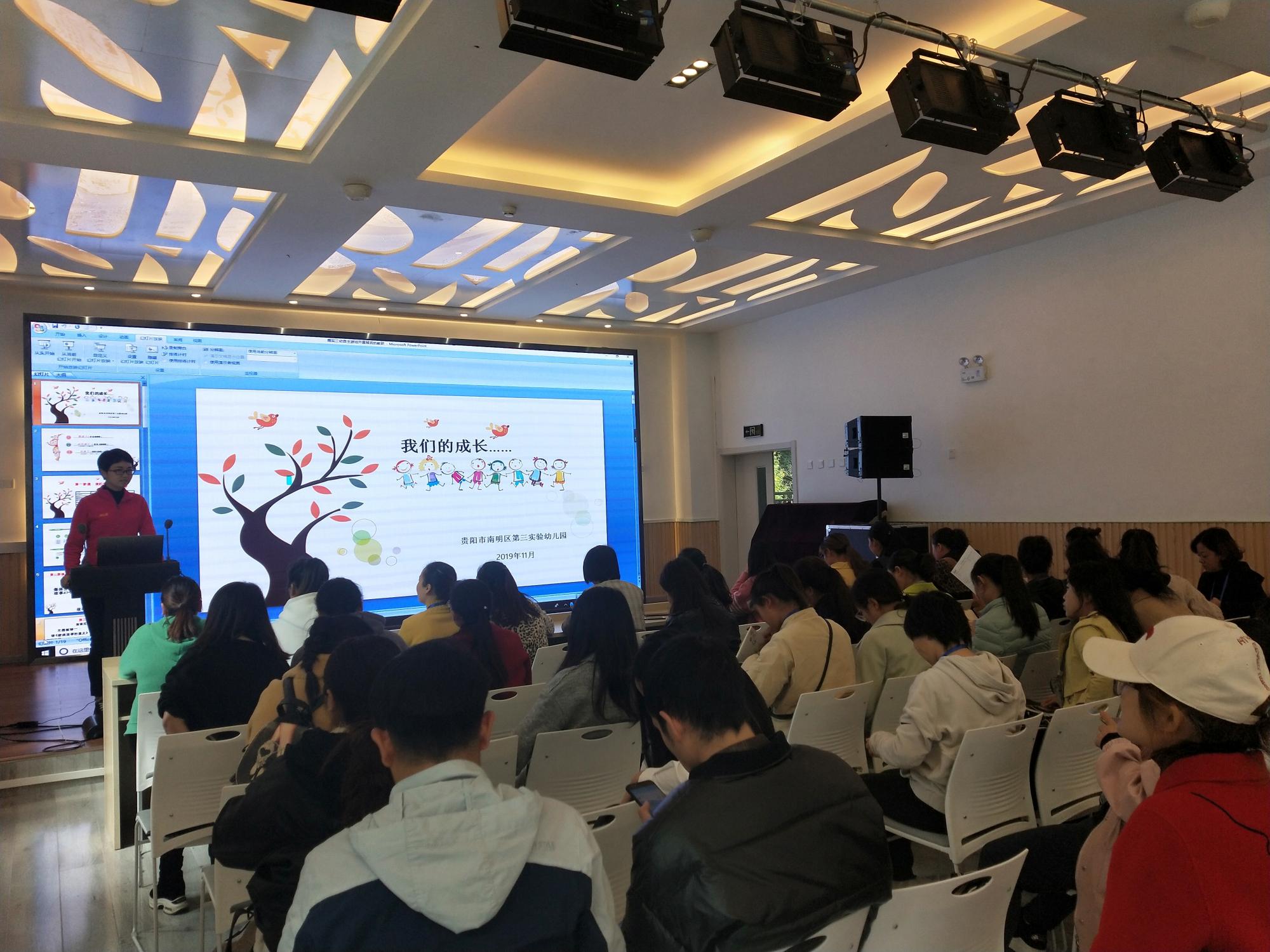 三所幼儿园各有特色,展示与分享内容各有千秋。北京市北海幼儿园贵阳分园的观摩活动主要做的是“幼儿园班本课程与教研”活动,小班的陈兴梅、中班的苏冰瑶、大班的梅玉三位教师分别做了《孩子在舒适、好玩的‘家’里快乐》、《“闪电”体检中心》、《我的区域我做主》的主题分享报告和活动展示交流。贵阳市南明区第三实验幼儿园主要开展的是“自主游戏与教研”活动;学员们参观了园所环境并观摩了幼儿园户外自主游戏活动,观摩结束后,在幼儿园保教主任何利红的主持下开展了主题为“我们的成长——自主游戏开展背后的教研”经验分享活动,分享涉及教研问题来源、教研目的、教研内容、教研方式、教研与教师专业发展。最后,学员就自主游戏开展的问题与幼儿园园长、教师进行交流; 贵州省政府机关幼儿园开展的活动主要是“幼儿园环境创设与体育课程建设”,幼儿园九个中班同时进行了户外大区域活动展示,学员们在观摩的同时就大区域活动材料的选择摆放、教师的介入等问题纷纷与幼儿园教师展开交流;最后陈竹青副园长与学员们做了主题分享《省幼健康领域课程的实践与思考》,就省幼健康领域课程实施理念,方案的设计,实施过程以及取得成效与学员们进行了交流分享。