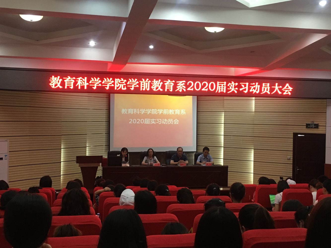 2020届学前教育专业实习动员大会在宁静楼150召开。学院党总支书记彭祥友、院长刘红、副院长袁川、各实习指导老师以及15级优秀实习生代表、16级全体学前教育系实习生参加会议。会议由学前教育系主任娄小韵主持。