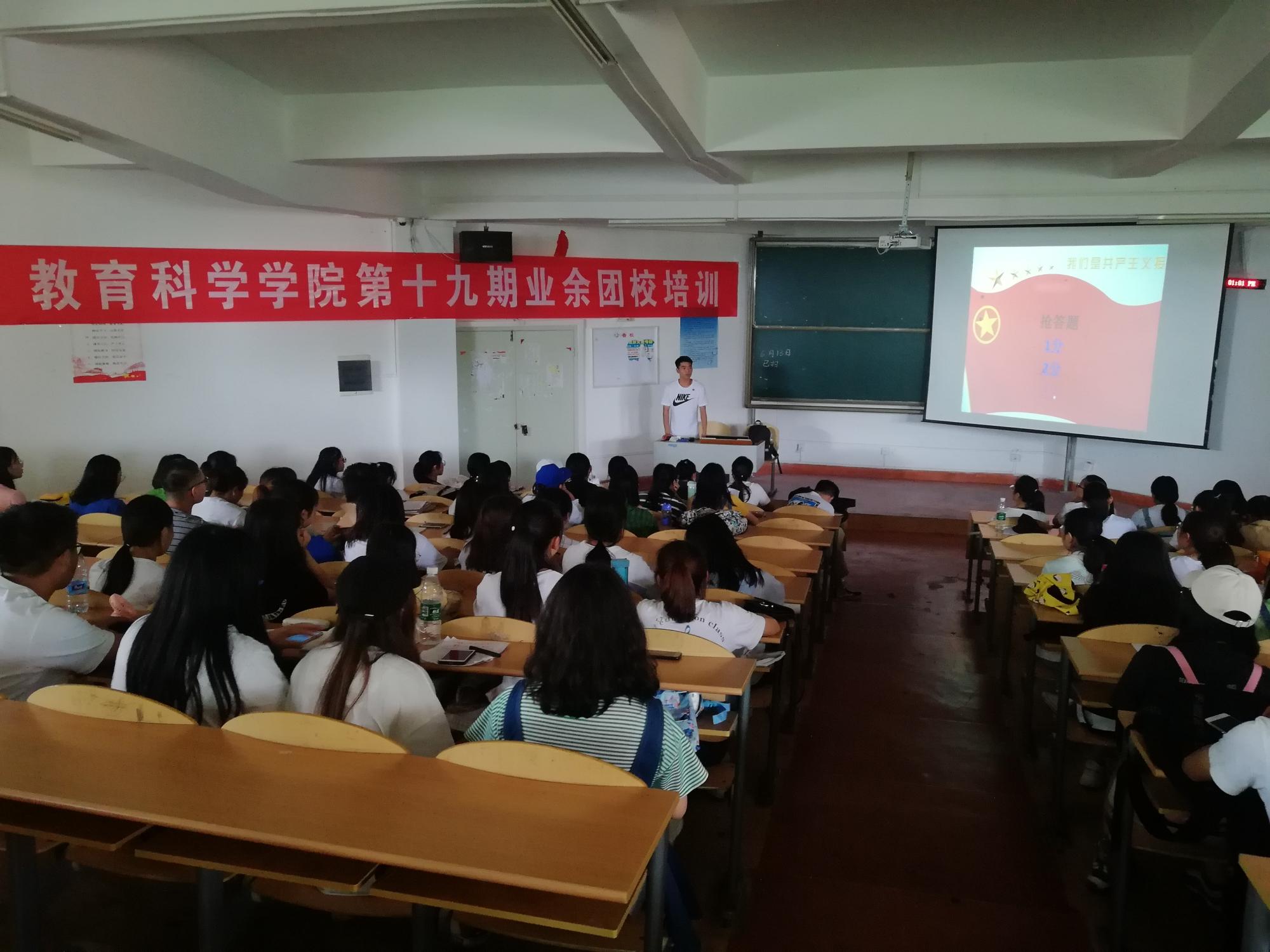 第十九期业余团校培训班在宁静楼436教室进行。全院共102名学员参加了此次培训。