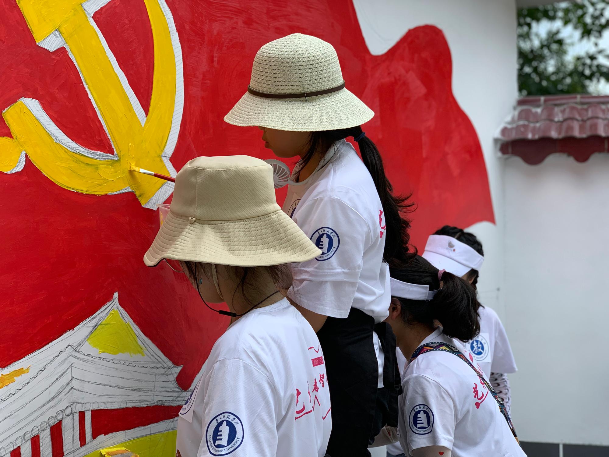 20名志愿者在腊脚村村民的接送下前往腊脚村委员会,进行歌曲《果香的地方》、《圆圆的李子你来采》及歌曲的伴舞排练。绘画组志愿者继续进行新农村墙绘绘画。