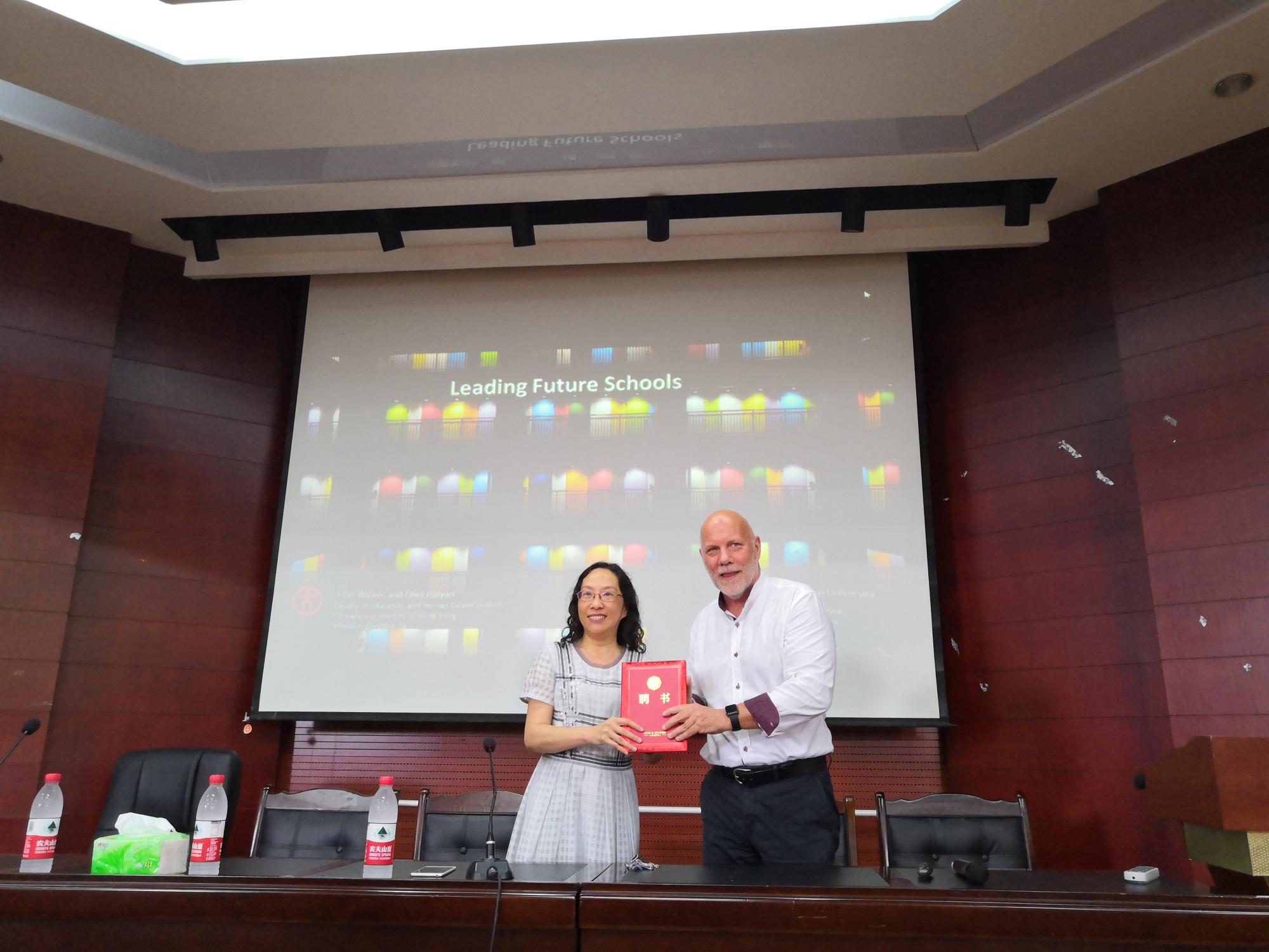 首先,教育科学院学院刘红院长向Alan Walker教授颁发了客座教授的聘书,Alan Walker教授受邀成为成人色情