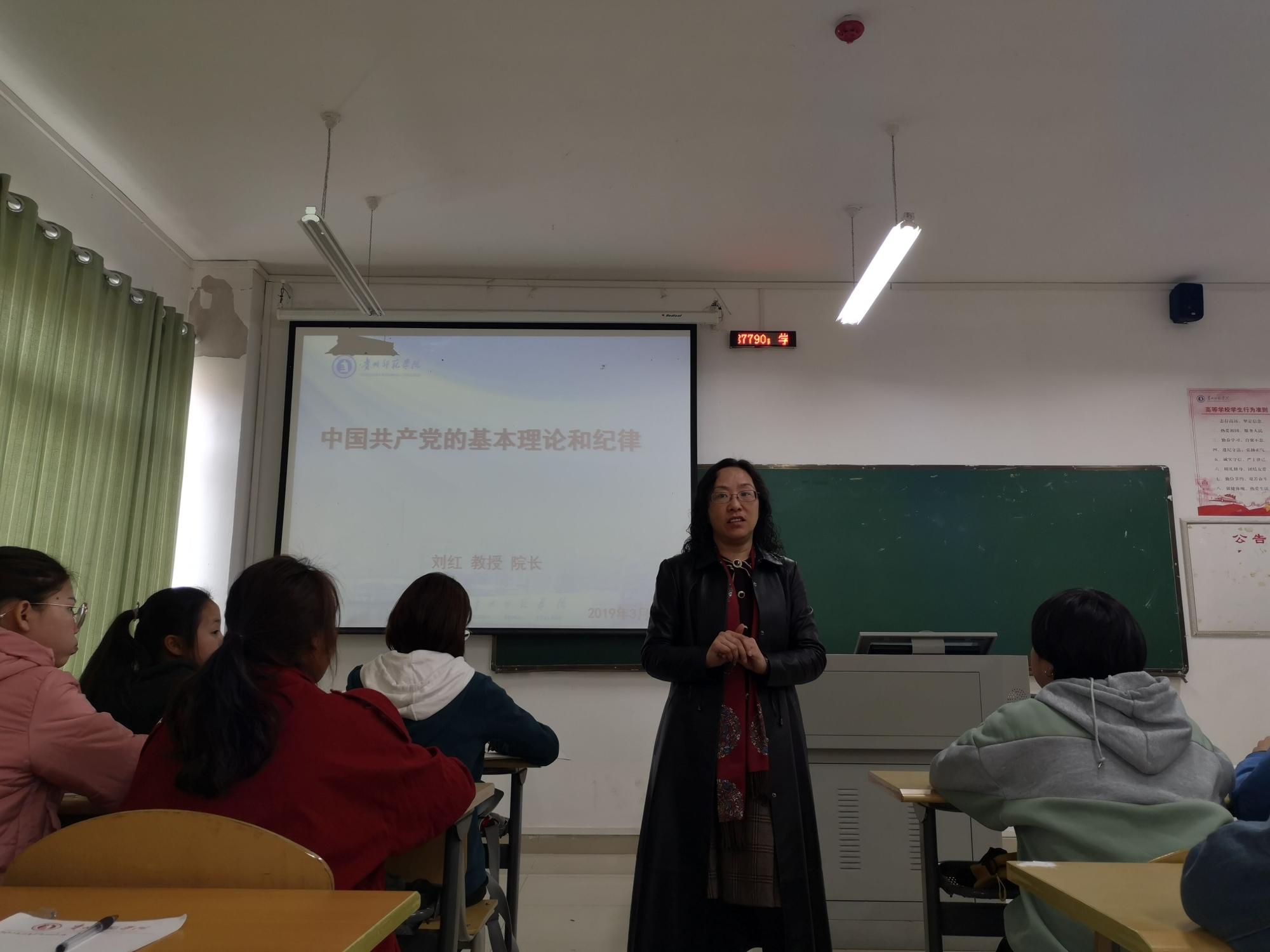 第47期入党积极分子培训班迎来了第二场专题讲座,院长刘红以“中国共产党的基本理论和纪律”为题,在逸夫楼515教室为全体参训学员讲授了内容丰富、意义深刻的一课。