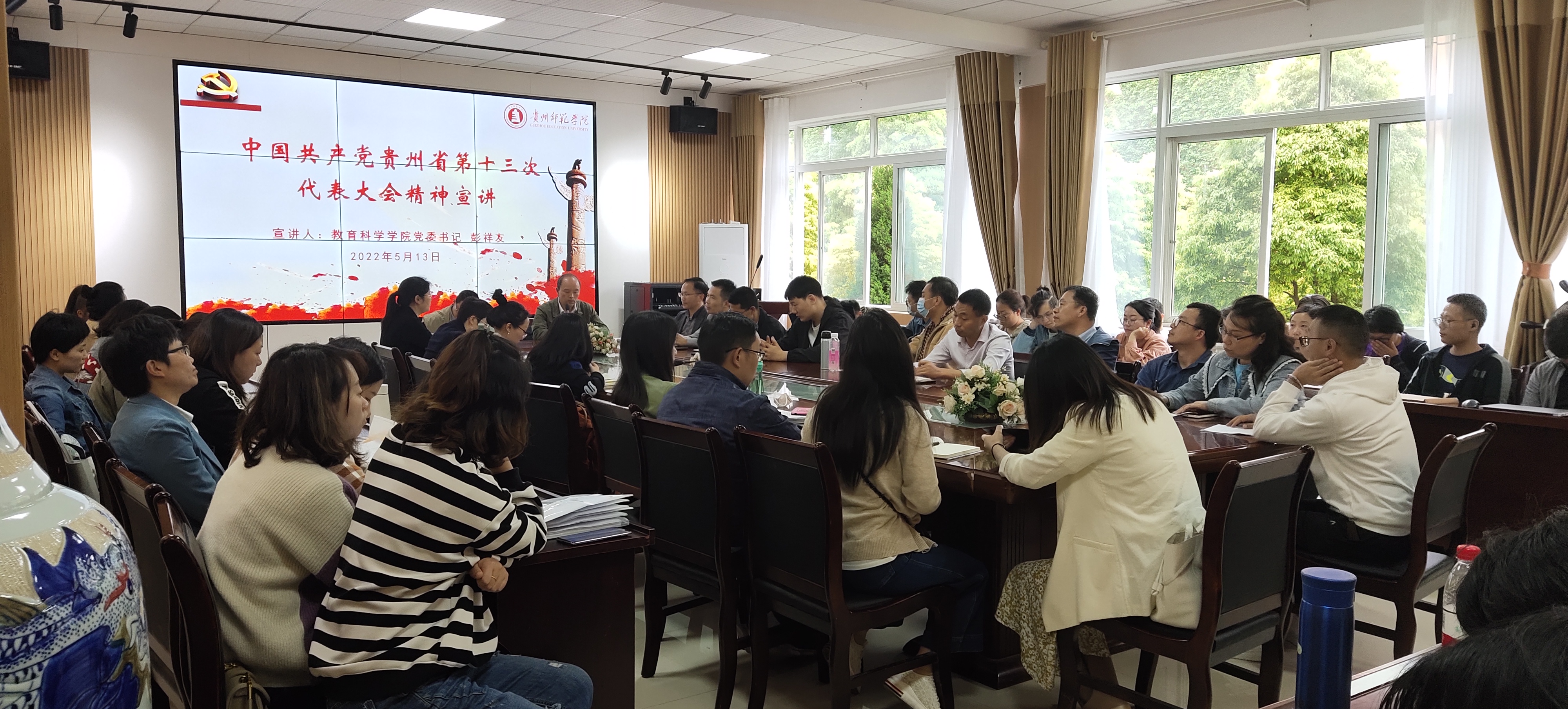 为认真贯彻落实省委和校党委关于学习贯彻省第十三次党代会精神相关部署要求,在全院掀起党代会精神学习热潮,教育引导广大教职工生把思想和行动统一到党代会精神上来,进一步坚定信心、提振士气。5月13日下午,院党委书记彭祥友在学院会议室为全体教职工以及学生代表宣讲中国共产党贵州省第十三次代表大会精神,宣讲会由院党委副书记、院长宋万踞主持。