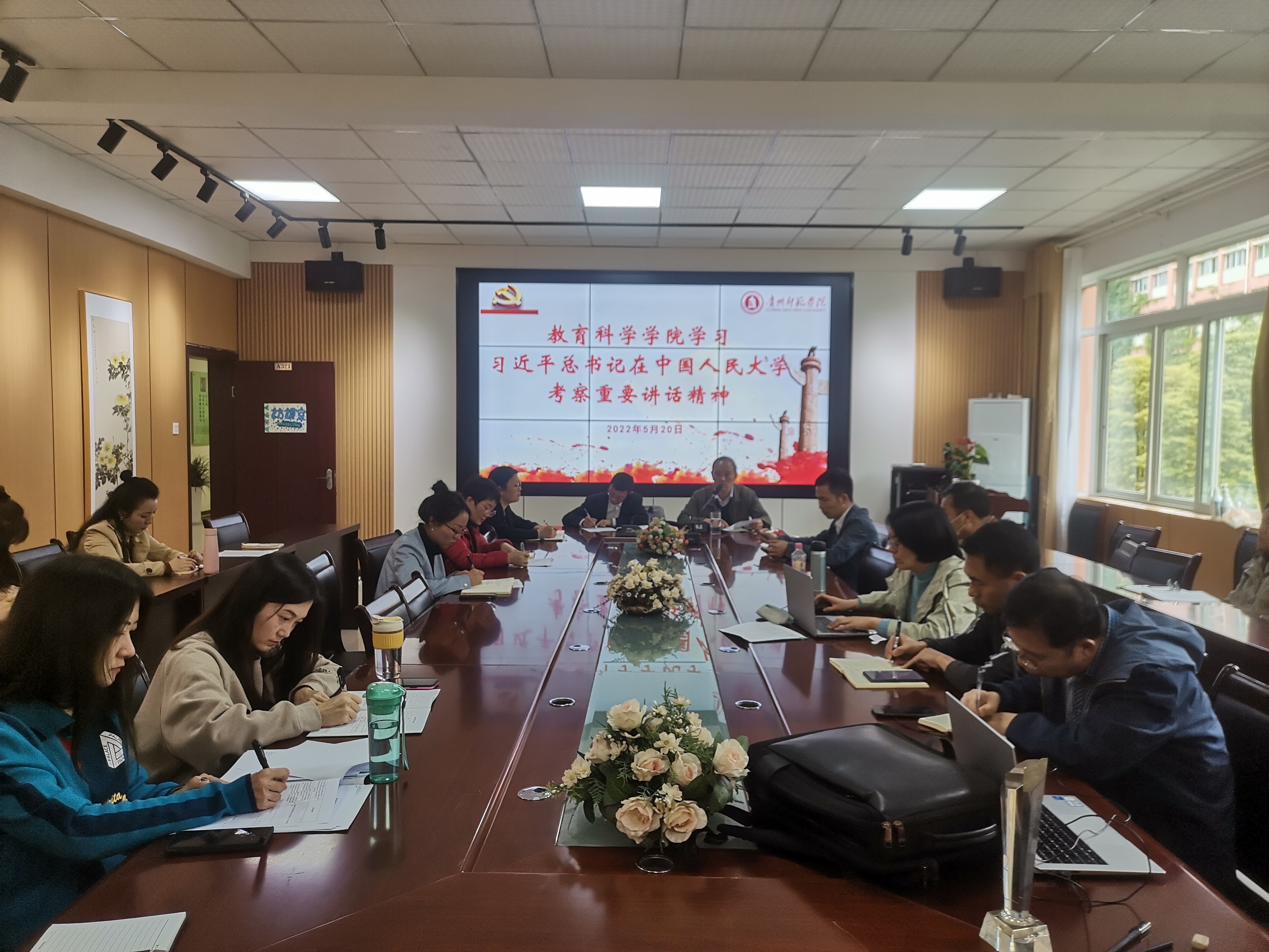 在学院会议室组织全体教职工认真学习、深刻领会、全面贯彻习近平总书记在中国人民大学考察时重要讲话精神。