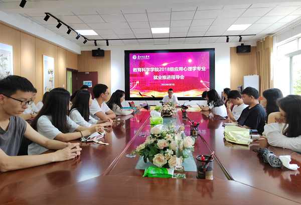 2018级应用心理学专业就业推进会,会议由2018级应用心理学系辅导员鲁蓓蓓主持,院长宋万琚、应用心理学系主任倪磊、2018级应用心理学系全体学生参加会议。