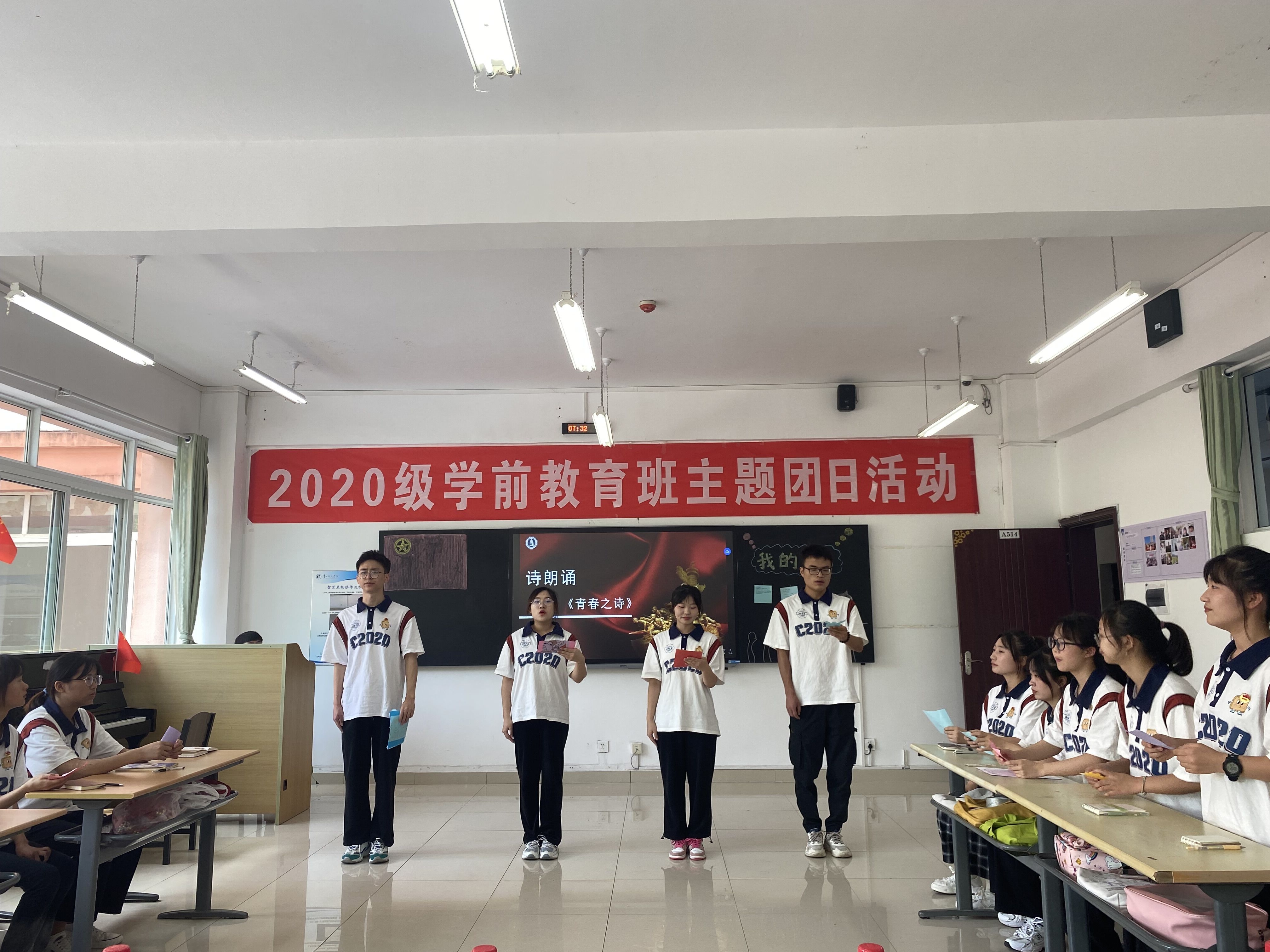 ,走进逸夫楼514教室参加2020级学前教育班团支部题为“以德树人 以爱育人 做最美幼儿教师”的主题团日活动,祝福并勉励青年学子,在矢志奋斗中践行“请党放心、强国有我”的青春誓言。校团委书记罗荣、成人色情