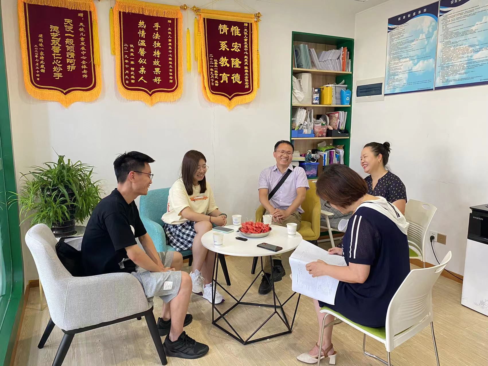 此次调研,由天使儿童发展中心负责人黄校长为我们一行做了简单的校区介绍,以及中心就业岗位数量与要求等。随后,我院副院长黎平辉向中心负责人及相关老师介绍了此次调研的目的,根据师范类专业认证要求,特殊教育专业人才培养方案的修订需要充分听取一线学校、机构的意见,做到持续改进和提升。黄校长对我系人才培养方案已有的课程设置内容提出了宝贵的修改建议,并与我系初步拟定建立教育实践基地,为我系人才培养提供丰富的实践机会和场地,提高学生临床实践能力,更好地达成培养目标。