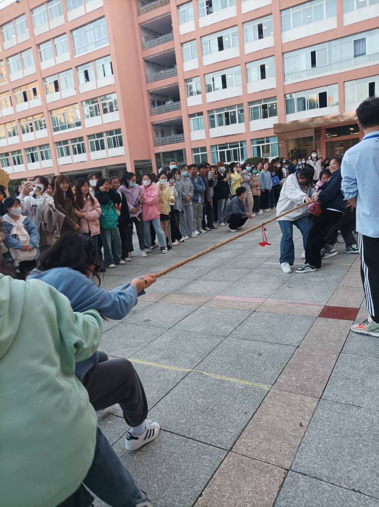比赛正式开始,参赛队员们紧握长绳,卯足了劲拼命往后拉。同学们自发组成拉拉队为比赛队员呐喊助威,哨子声、呐喊声此起彼伏,激烈的比赛现场将整个活动推向了高潮,充分展现了学院学子积极向上、奋发进取的青春风采。