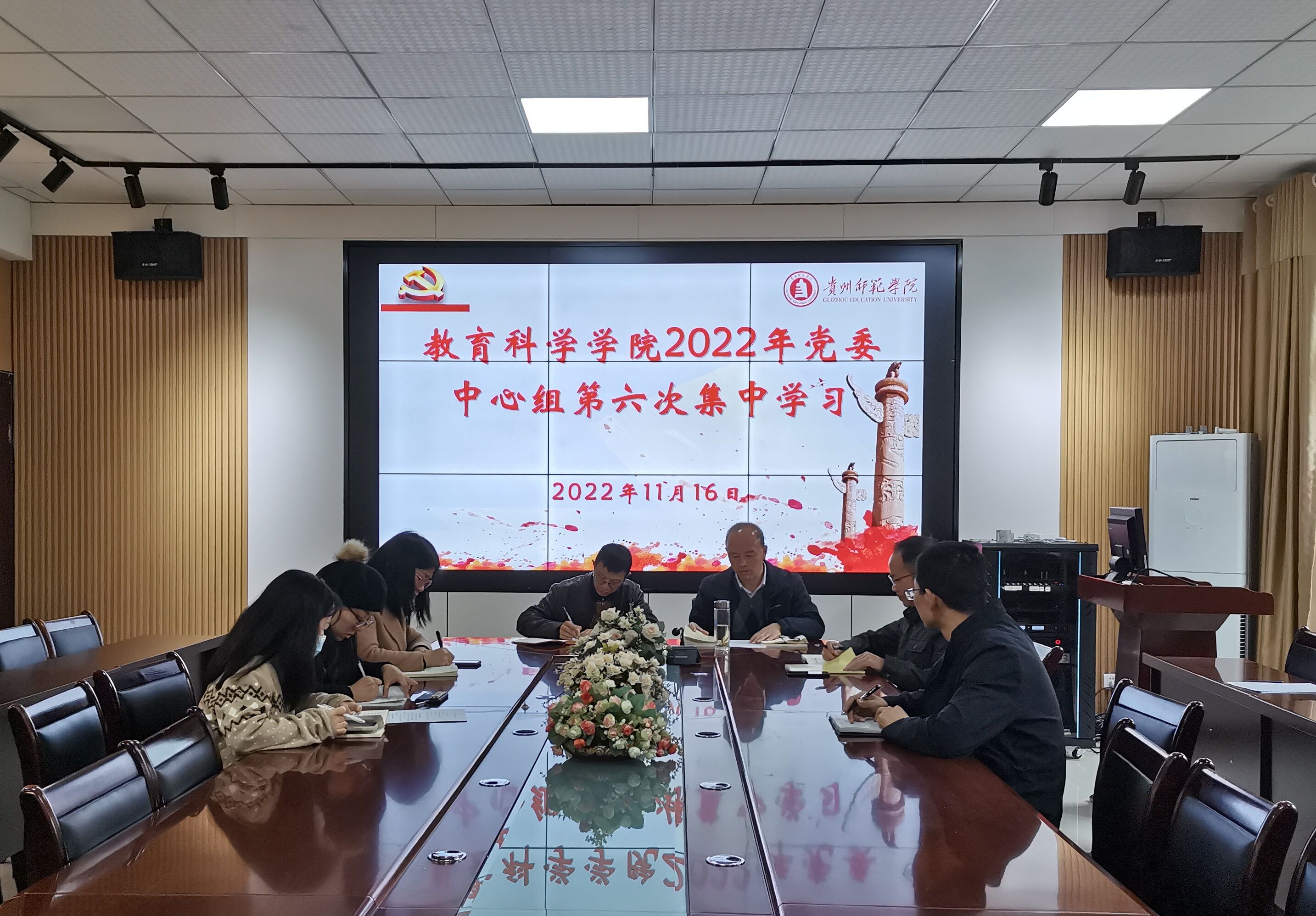在学院会议室召开2022年党委中心组第六次集中学习会议,专题学习习近平经济思想和生态文明思想纲要。学院党政领导、党委委员出席,各党支部书记、党政办公室主任列席。会议由院党委书记彭祥友主持。