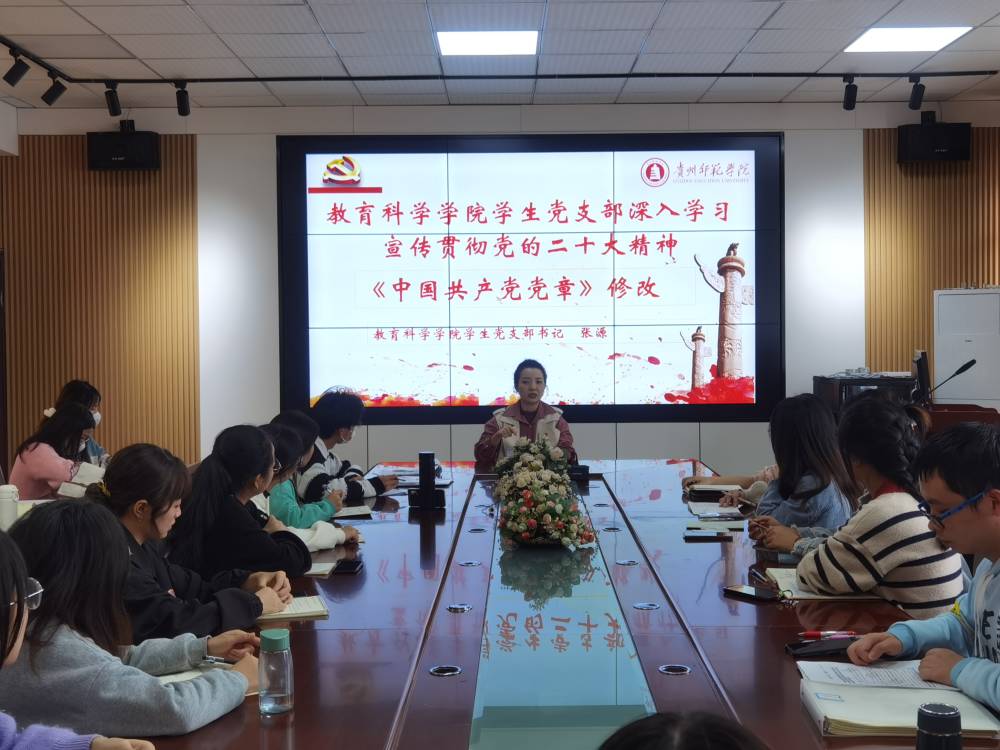 学生党支部书记张源在学院会议室为学生党支部开展了学习贯彻党的二十大精神专题学习三。
