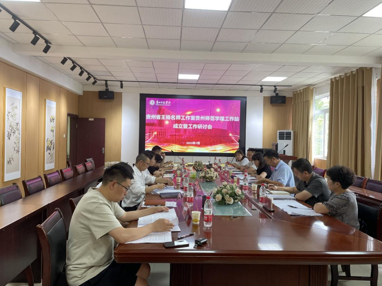 为进一步加强特殊教育专业人才培养和特殊教育教师专业能力提升,贵州省特殊教育王杨名师工作室贵州师范学院工作站成立暨工作研讨会于7月13日在逸夫楼321会议室召开。出席本次会议的有省教育厅基教处谢佳,贵州师范学院教师工作部部长王茜,贵州师范学院教科院院长宋万琚、副院长袁川、副院长黎平辉、特教系教师雷经国、杨娟,贵州省特殊教育名师工作室主持人王杨,遵义市特殊教育学校校长余贞文团队一行6人,会议由教育科学学院院长宋万琚主持。