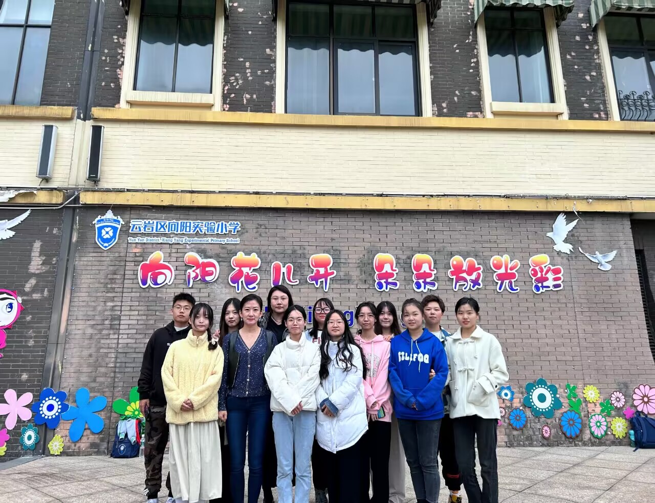 为了更好的了解艺术教育专业实习生在实习单位中的实习情况,10月8日下午,艺术教育系系主任、实习点负责人、实习指导老师马慧慧,前往云岩区向阳实验小学看望正在开展教育实习的2020级12名艺术教育专业实习生。