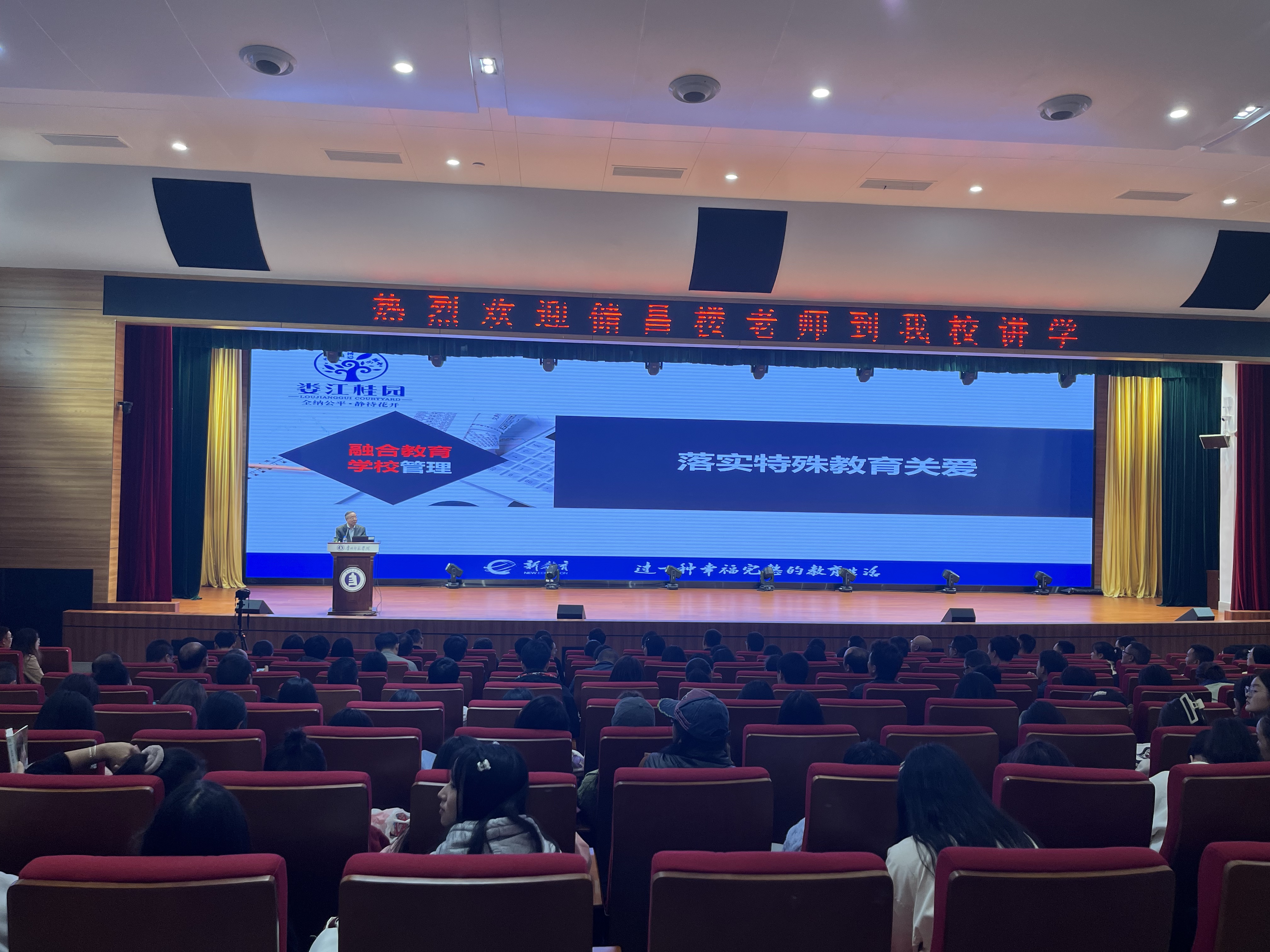 做了题为“融合学校建设、运行与班级管理”的专题讲座。我院特殊教育系的同学参与了本次讲座。