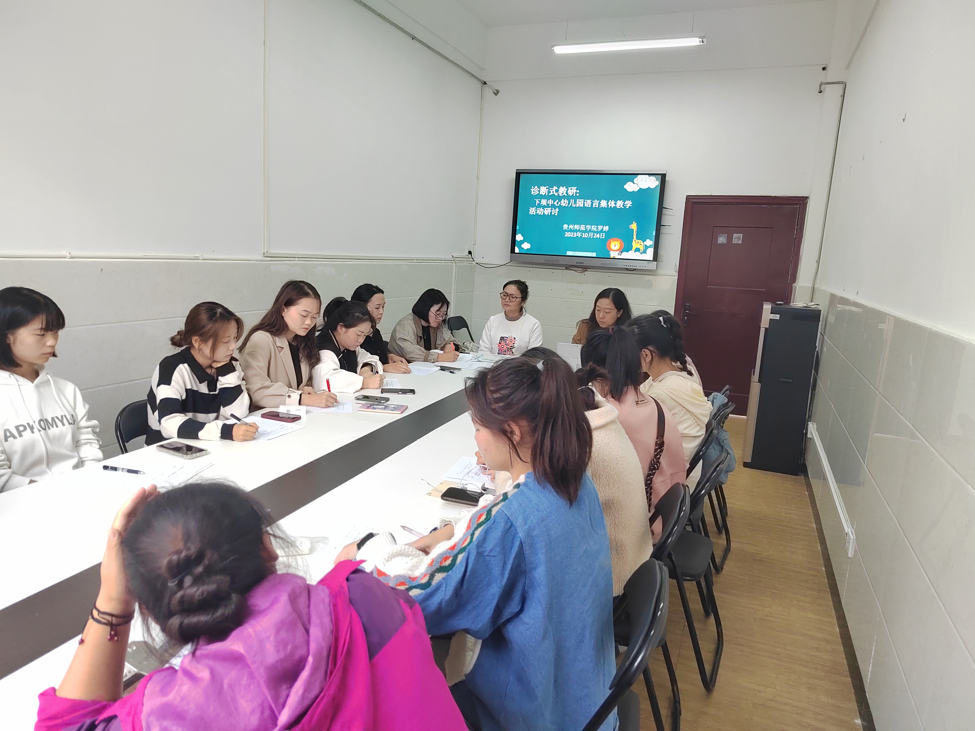 2023年10月24日下午及11月14日下午,在贵阳市乌当区下坝镇中心幼儿园,我院学前教育系罗婷老师及 “学前儿童语言教育”课程项目学习小组8名学生携手组织了诊断式教研活动,教研活动由幼儿园徐永燕副园长主持。