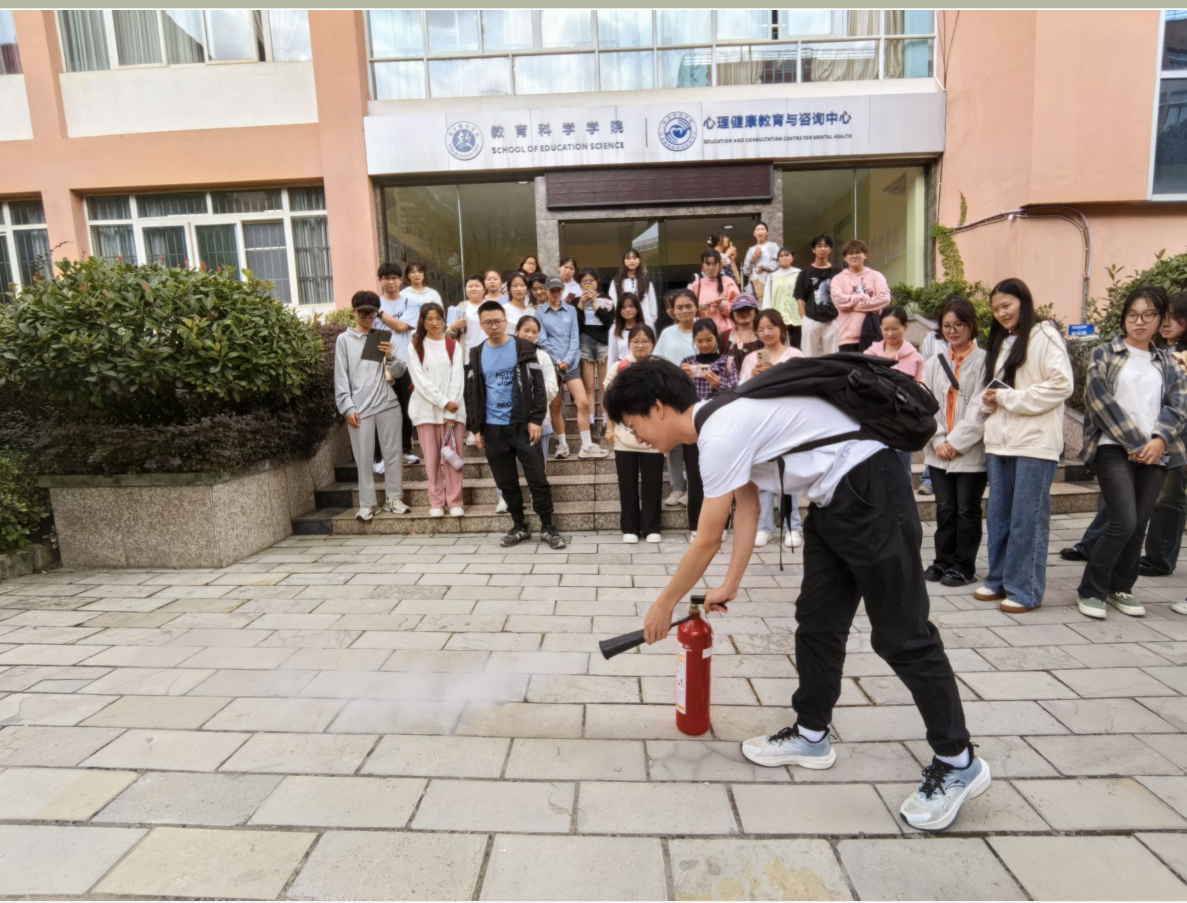 2021、2022、2023级学生代表进行实验室安全教育培训。在培训会上,唐辉一详细讲解了实验室操作使用相关规定以及用水和用电安全,重点阐述了当遭遇实验室火灾时的逃生方式方法。同时,唐辉一老师还悉心解答了学生代表关于实验室使用方面的相关问题。之后,唐辉一老师给大家现场演示了灭火器的使用方式。